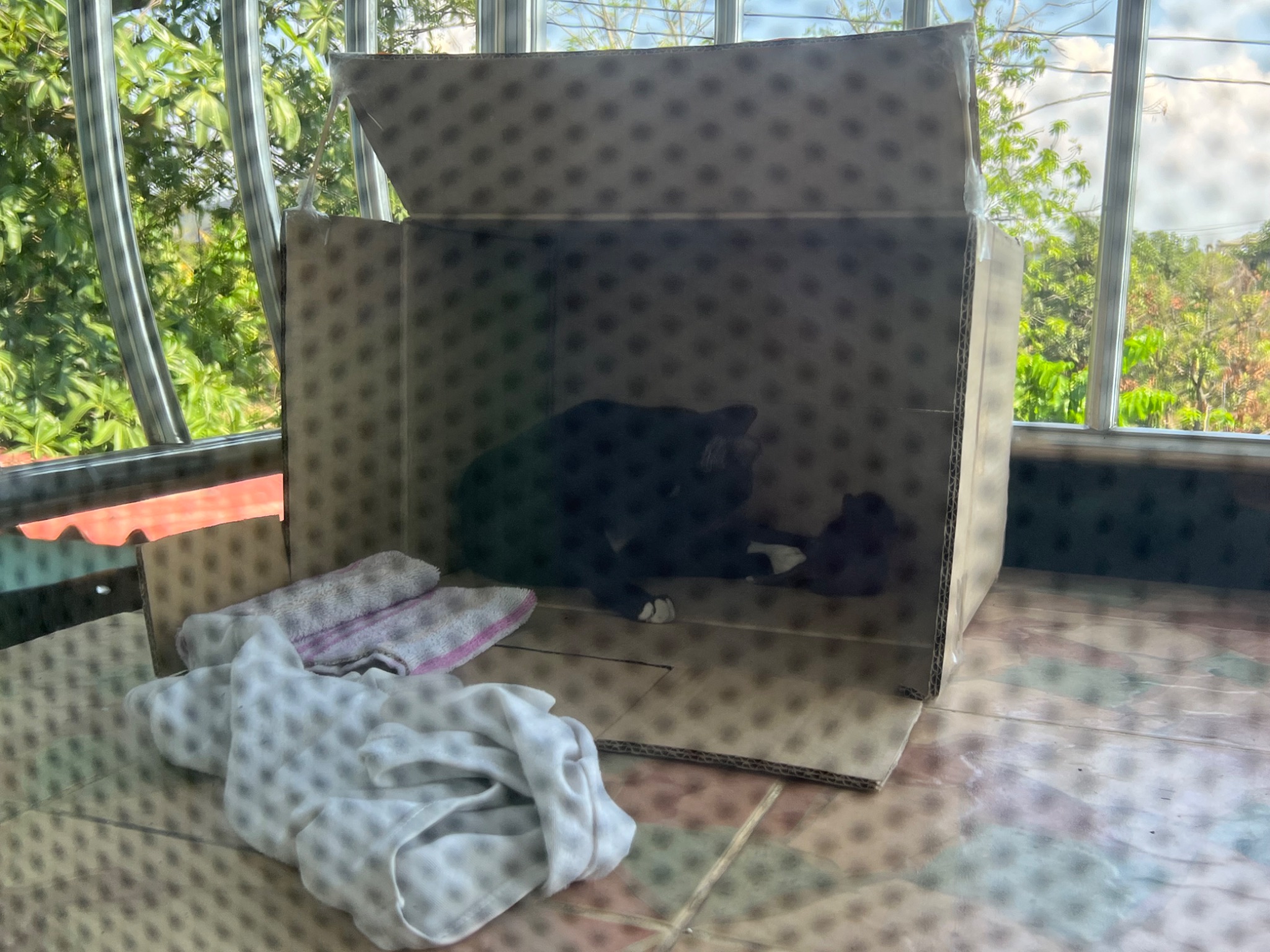 คือแมวเป็นแมวจรมาคลอดลูกไว้ในบ้านเรา แล้วทีนี้ตอนแรกจะจับส่งเทศบาล เลยเอามาไว้ในกรง แล้วน้องน่ารักมาก ถึงจะชอบขู่ เราเลยตัดสินใจเลี้ยงดีกว่า เลยเปิดกรงไม่ขังไว้แล้ว กลัวน้องเครียด อยู่ในบ้านมาได้2สัปด