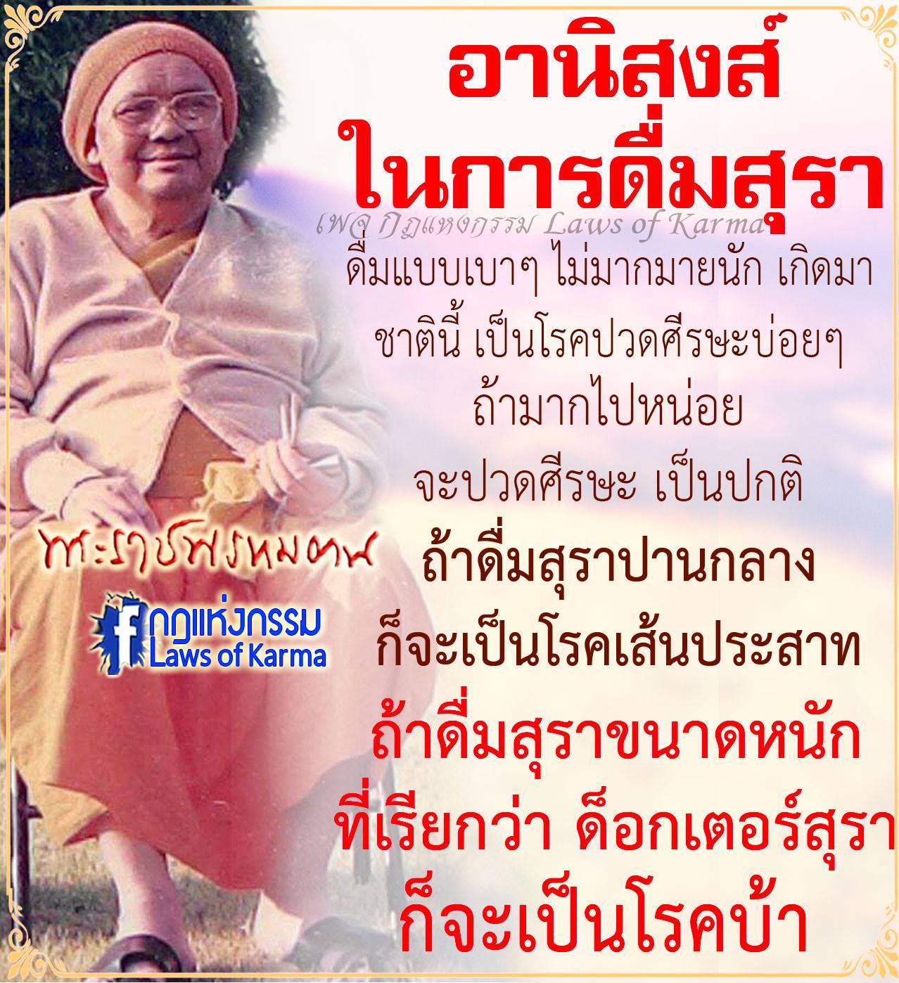 “ดื่มสุราแล้ว ทำให้ขาดสติ ประมาท พูดพลั้งเผลอ ทำชั่วโดยไม่รู้ตัว”