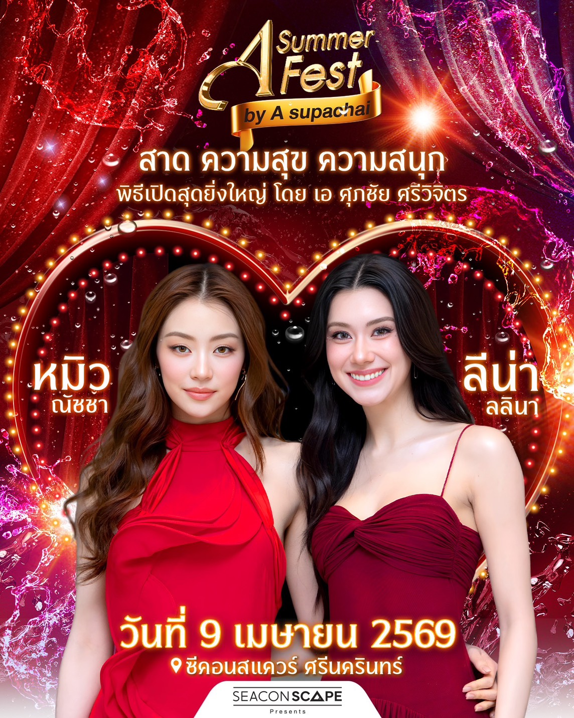 เจ้าของตลาด เอ ศุภชัย ศรีวิจิตร แฮปปี้จัดงานกันไปเรียบร้อยแล้วกับงาน Summer A Fest ฉลองสงกรานต์ เปิดตลาด “A fair อร่อยเกรดเอ by A Supachai” ครั้งที่ 10 ณ ซีคอนสแควร์ ศรีนครินทร์ Seacon Square Hall โดยงานนี้ได้คู่จิ้นสุดฮอต ลีน่า ลลินา ชูเอ็ทท์ และ หมิว ณัชชา เตชะมงคลภิวัฒน์ มาร่วมสร้างสีสันความสนุกสนาน สาดความสุขให้กับแฟนๆทุกคนในช่วงเทศกาลสงกรานต์ ซึ่งทั้งลีน่า-หมิว ต่างยอมรับว่า ดีใจมาก ที่ได้มาร่วมงาน ”เอแฟร์” ของพี่เอ ศุภชัย ครั้งที่ 10 ครั้งนี้ เพราะอยากมานานแล้ว อยากมาซื้อของอร่อยกินกัน ซึ่งครั้งนี้ก็สมหวัง ได้ขนของกินอร่อยกลับบ้านไปเยอะมาก ยิ้มแฮปปี้กับทั้งคู่