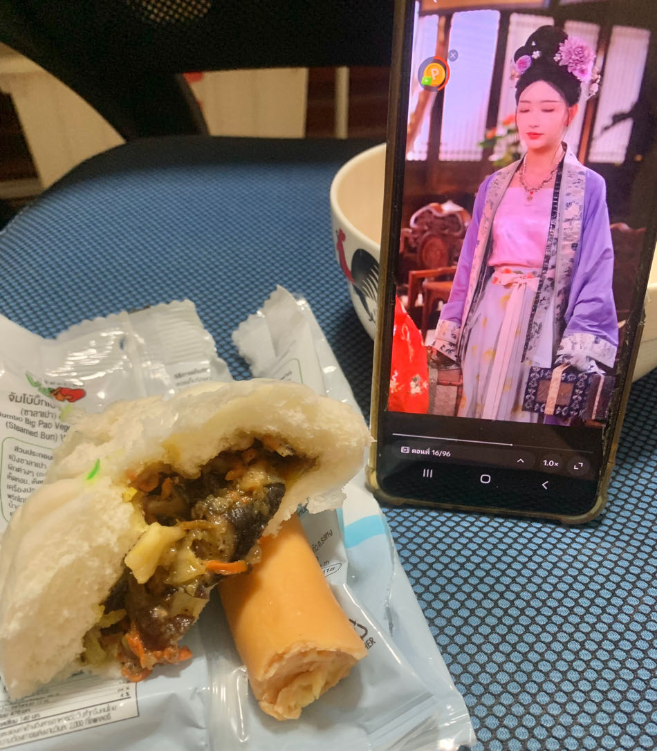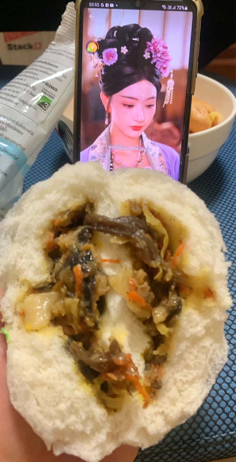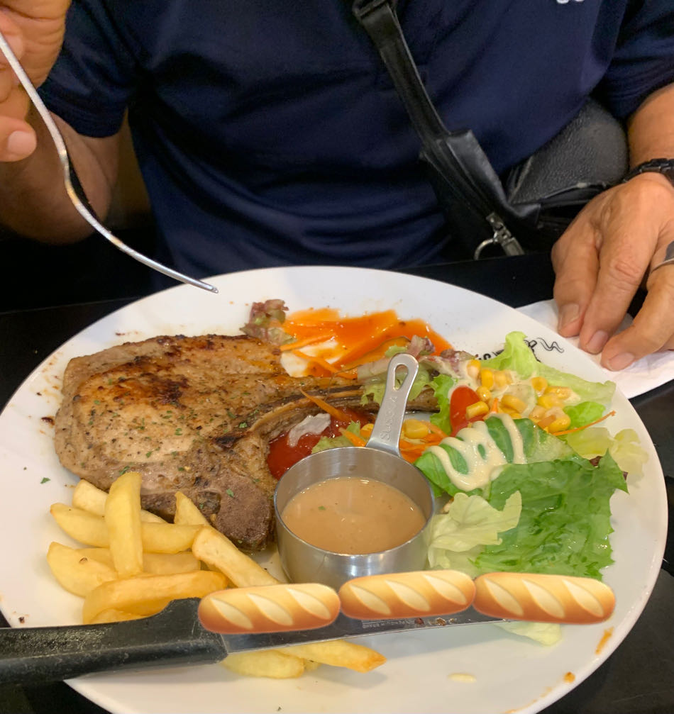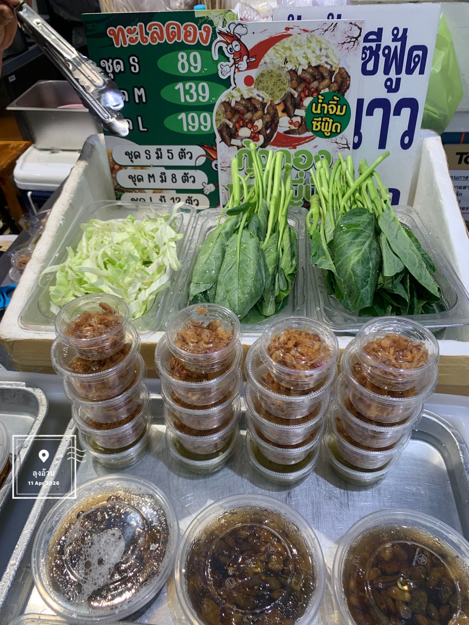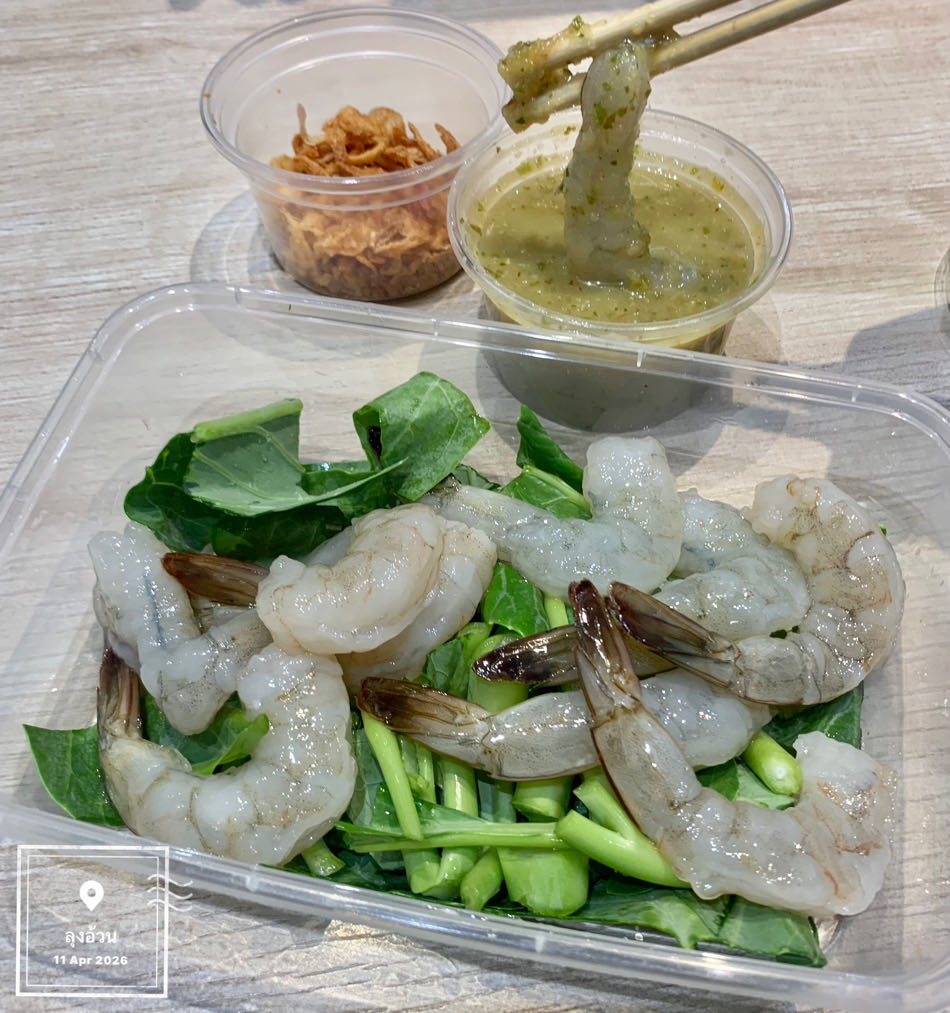 [TripNote] ลุงกิน 11 เมษา: กุ้งแช่น้ำปลาใบคะน้าสด &สเต็ก Pork Chop, ไส้กรอกชีส, ซาลาเปาเจ