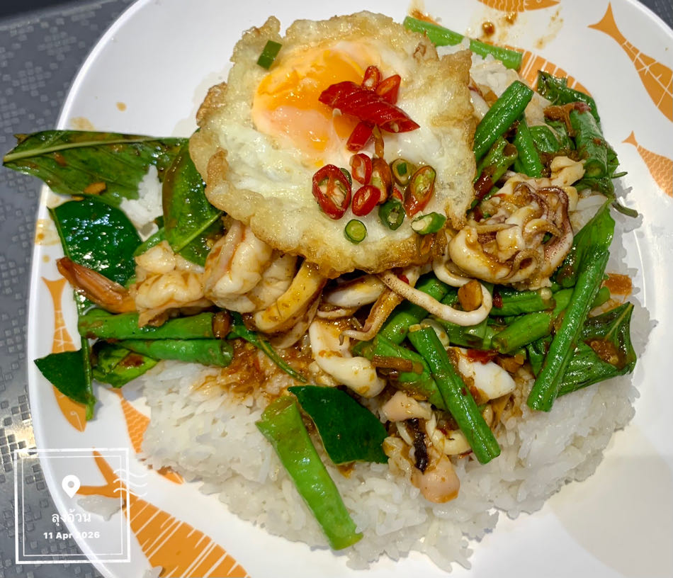 ข้าวราดผักพริกแกงถั่วฝักยาว & ไข่ดาว