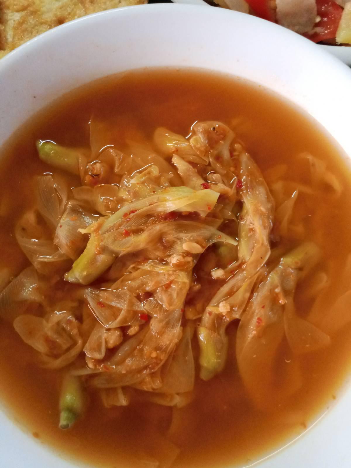 แกงส้มแตงโมอ่อน นาน ๆ จะได้กินแตงโมอ่อน เนื้อหวานกรุบ ๆ ฉ่ำน้ำแกง และอุ้มความร้อนได้นานเลย เป็นผลไม้ที่เข้าท่าดี กินได้ทั้งตอนอ่อน ตอนโต แม่ผมยังมีปลาอีกเยอะ เล