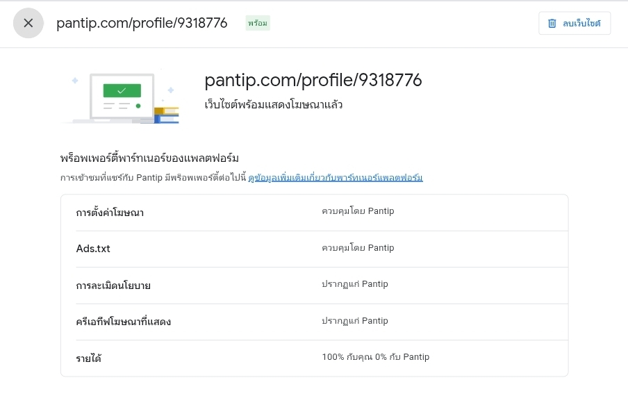 จากรูปภาพ หมายความว่าการผูก Adsense เรียบร้อยแล้วใช่ไหมครับ และเราจะดูความคืบหน้า แดชบอร์ด อะไรทำนองนั้นได้จากตรงไหนครับ พอดีกดดูวนไปมาหลายรอบแล้วแต่หาไม่เจอ รบกวนชี้แนะด้วยครับ เผื่อใช้เป็นข้อมูลว่ากระทู้แบบไหนมีการเข้าถึงมากน้อยอย่างไร ขอบคุณล่วงหน้าครับ