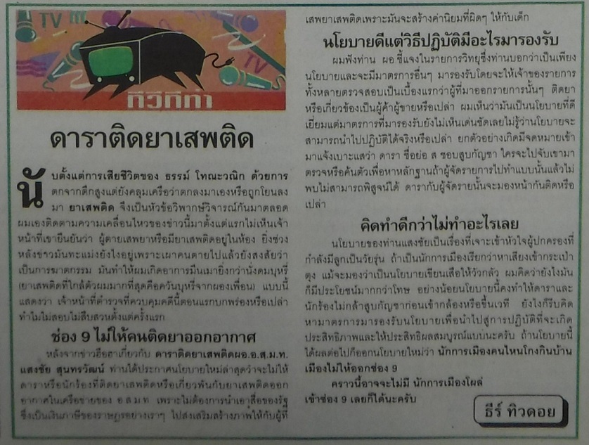 รื้อข่าวเก่า : ทีวีไทยช่องแรกที่ประกาศบอยคอต "ดาราติดยา" คือช่อง...?