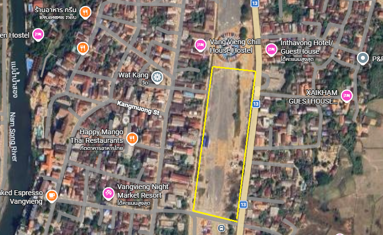 สถานที่ตั้ง - โลเคชั่นดีม๊ากกกก อยู่กลางลานบินเก่าหน้าเมืองวังเวียง ริมถนนสาย 13 เหนือกันเลยเชียวแหละ