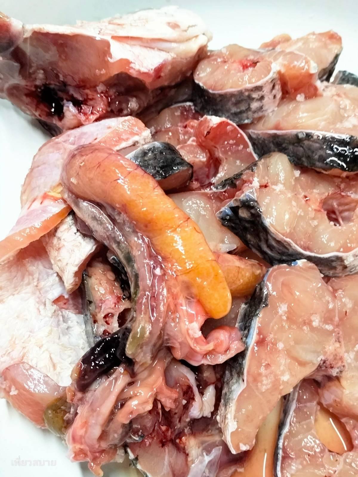 1. ปลาช่อน ล้างสะอาด หั่นชิ้น