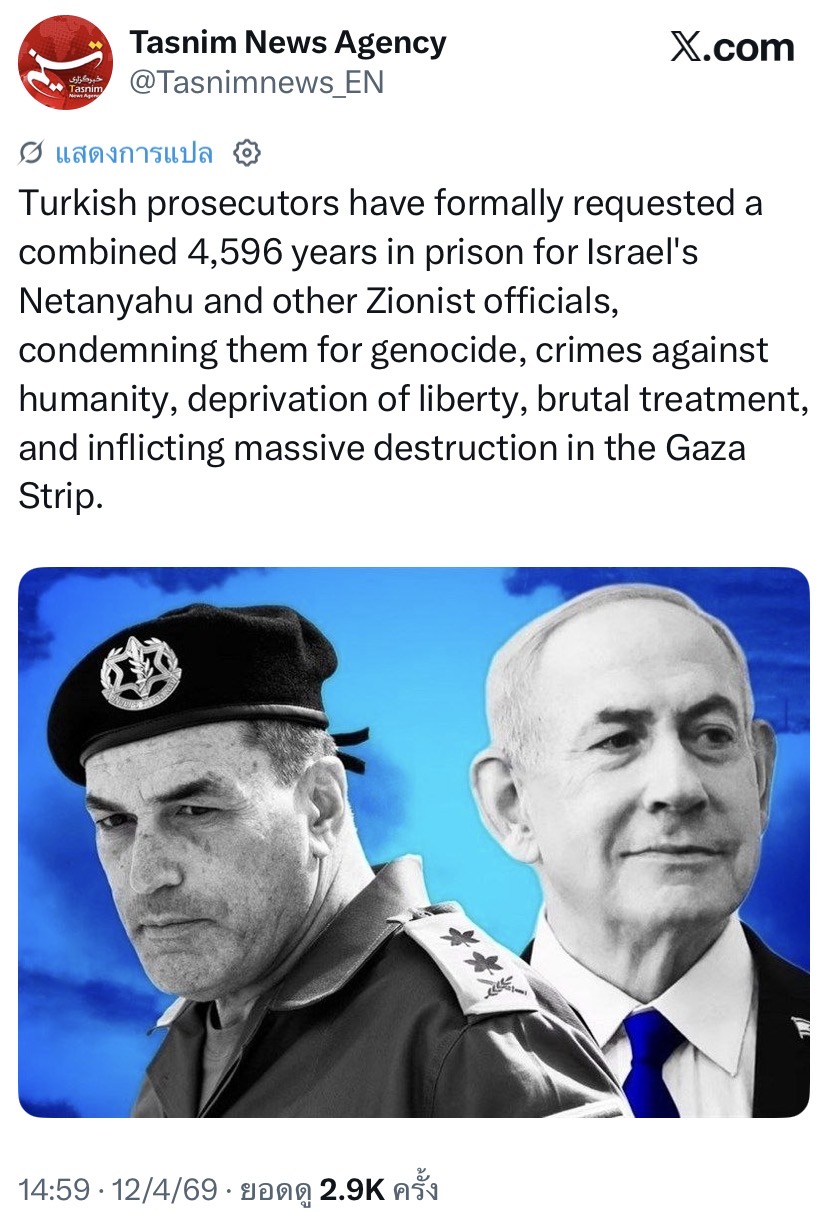 อัยการตุรกีได้ยื่นฟ้องเจ้าหน้าที่ระดับสูงของอิสราเอลรวม 36 คน
