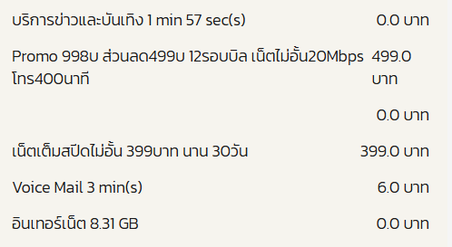 ผมมีแพคเกจซิมเน็ตไม่อั้น 4 mbps ที่เป็น 3 เดือน 300 บาท แต่ผมได้ไปสมัครเน็ตเพิ่มแบบไม่อั้น 4 mbps 1 วัน 30 บาท (เพราะแพ็คเกจที่ใช้อยู่ดู Youtube จำกัดไว้ที่ 384 kbps) แล้วหลังจากสมัครเน็ต 30 บาทไปแล้