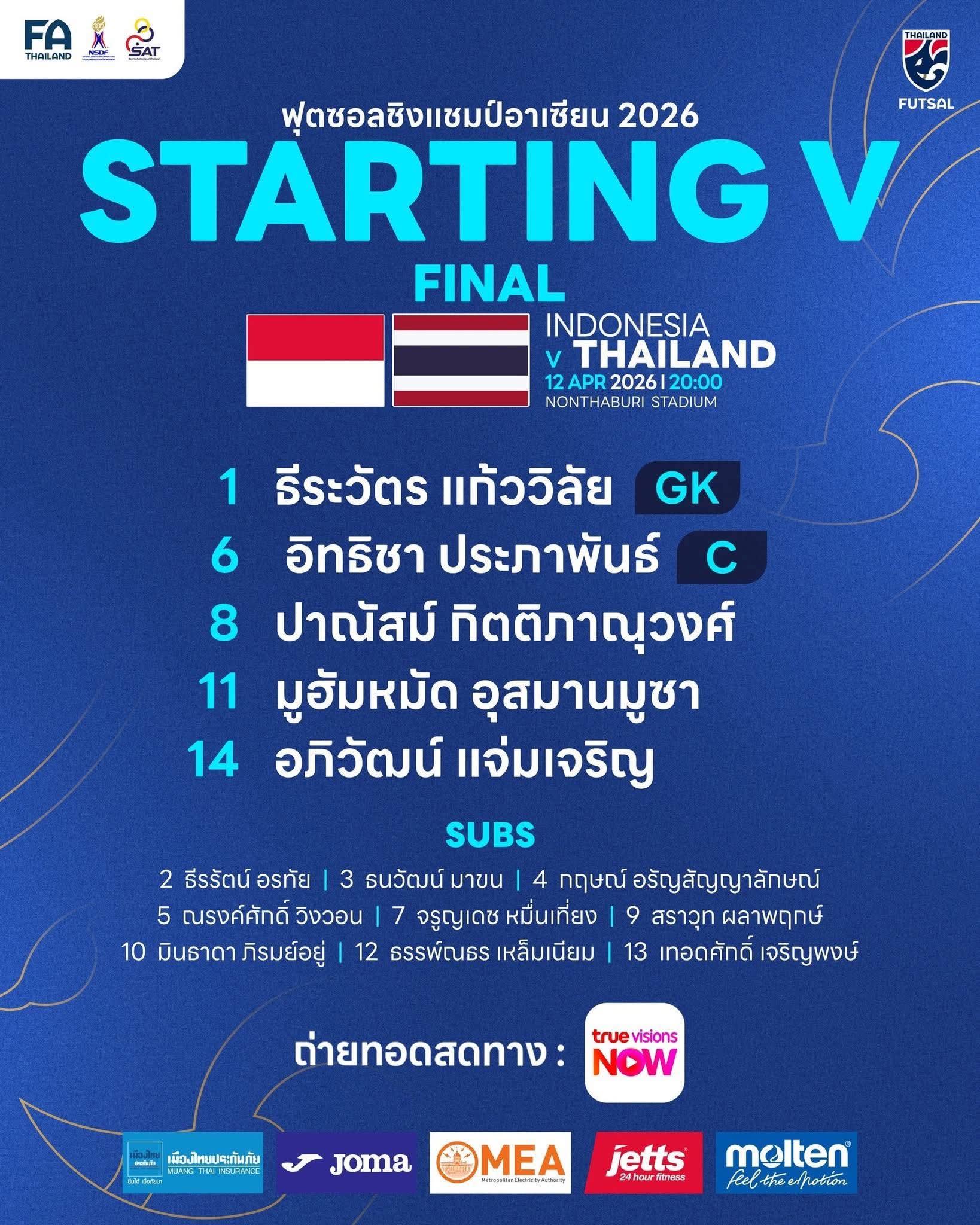 🔴 #Matchday ⚽🥅 ฟุตซอลชิงแชมป์อาเซียน 2026 รอบชิงชนะเลิศ | 🇮🇩 อินโดนีเซีย พบ ไทย 🇹🇭
