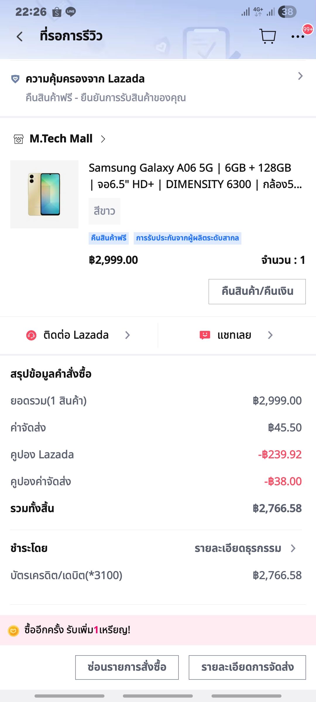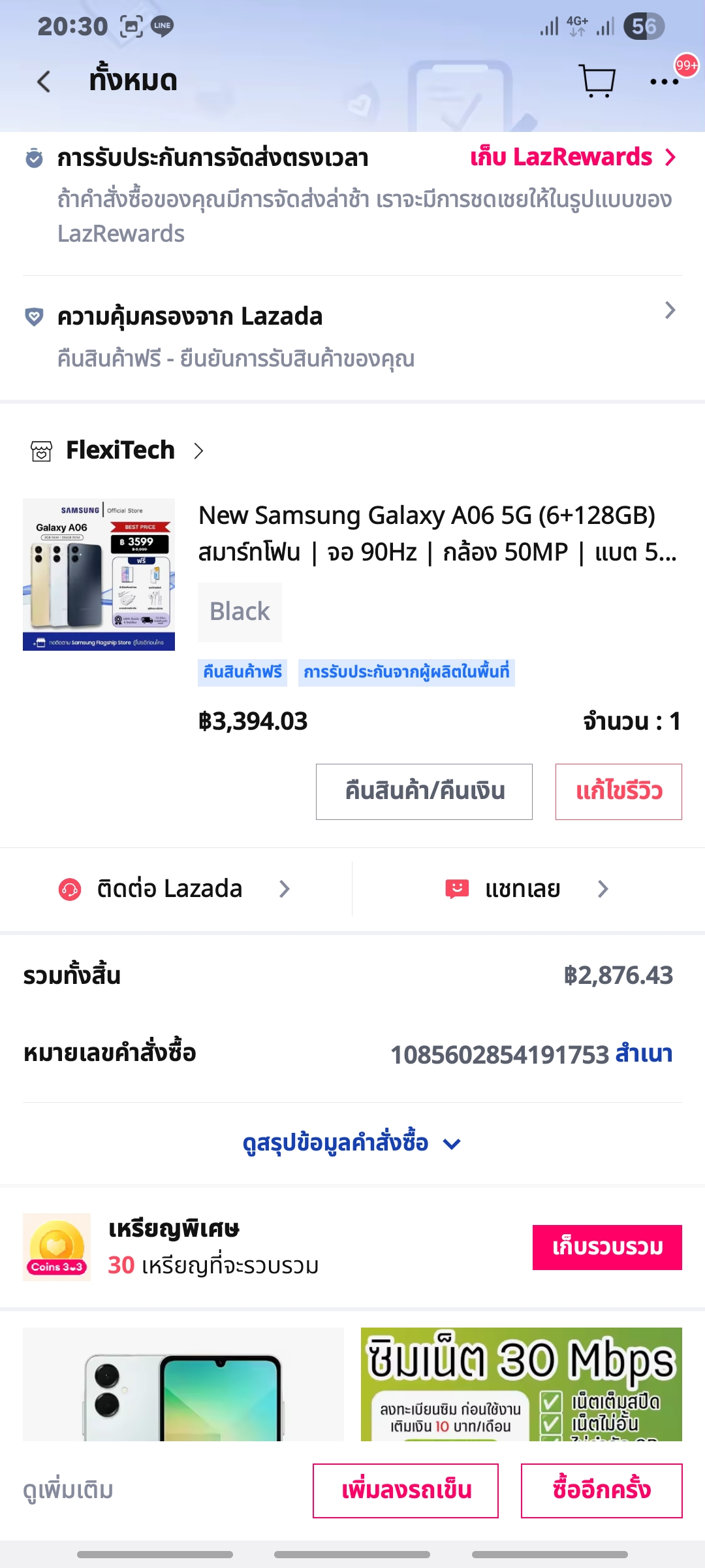 ร้านใน Lazada ขาย smartphone samsung A06 ขายของไม่ตรงปก