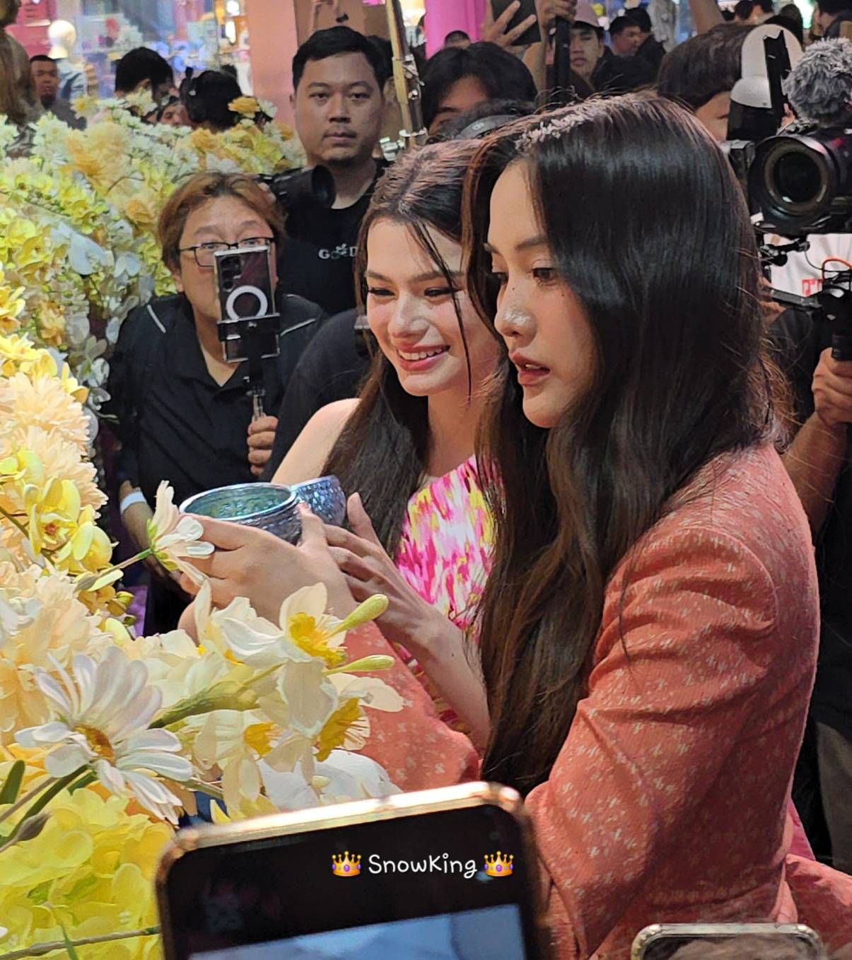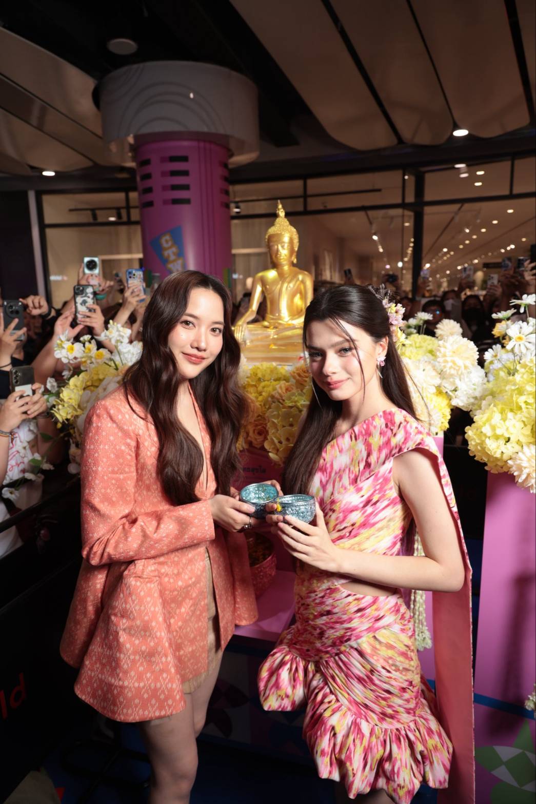 🌷🪽 Freen and Becky, they performed the water-pouring ritual in modern Thai outfits at centralwOrld Songkran Festival 2026
