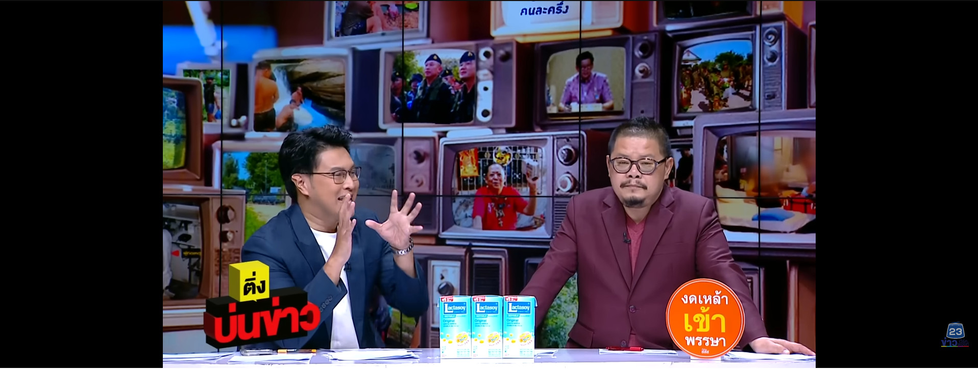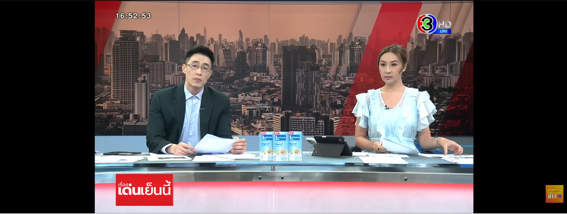 เห็นหลายๆรายการข่าวที่มีลักษณะแบบนี้ เช่น ช่อง 3 ขันข่าวเช้าตรู่ วางผลิตภัณฑ์นมถั่วเหลืองแลคตาซอย, เที่ยงวันทันเหตุการณ์, โหนกระแส, ข่าว 3 สี, เรื่องเด่นเย็นนี้ ผลิตภัณฑ์ทำสีผม d cash, KFC, ข่าวนอกลู่ วางผลิตภัณฆ์ขนมยูโร ช่อง 7 จ้อข่าวเช้า ภาพสปอนเซอร์ยาแก้ไอตราเสือดาวและผลิตภัณฆ์ขนมเอลเซ่, สนามข่าว 7 สี ภาพสปอตเซอร์ยาทิฟฟี่, ห้องข่าวภาคเที่ยง, ข่าวเย็นประเด็นร้อน ผลิตภัณฑ์ทำสีผม d cash เหมือนรายการเรื่องเด่นฯ ช่อง 3, เจาประเด็นข่าว 7 HD, ช่อง 9 9 ข่าวเช้า, เจาะลึกทั่วไทย Inside Thailand, 9 ข่าวเที่ยง, 9 ข่าวค่ำ, ช่อง WP รายการข่าว WP 23 สปอนเซอร์ยาแก้ปวดซาร่า, GMM 25 เคาะข่าวเช้า, ช่อง 8 ข่าวช่อง 8, ลุยชนข่าว, ช่องวัน ข่าวช่องวัน, ไทยรัฐทีวี ไทยรัฐบันเทิง, อมรินทร์ททีวี ข่าวอมรินทร์ และ PPTV โชว์ข่าวเช้านี้, เที่ยงทันข่าว, เข้มข่าวค่ำ