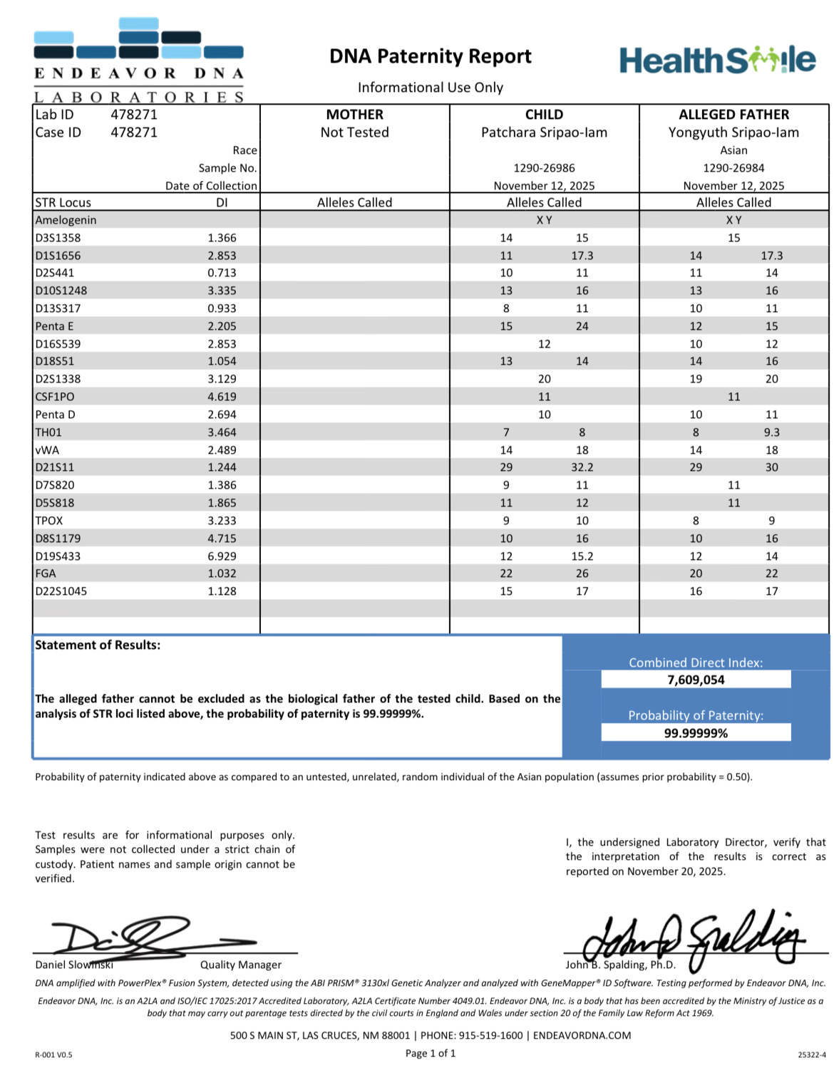 สวัสดีครับ ผมอยากทราบผลDNA ข้างต้นเค้าอ่านผลกันยังไงครับ ว่าตรงกัน