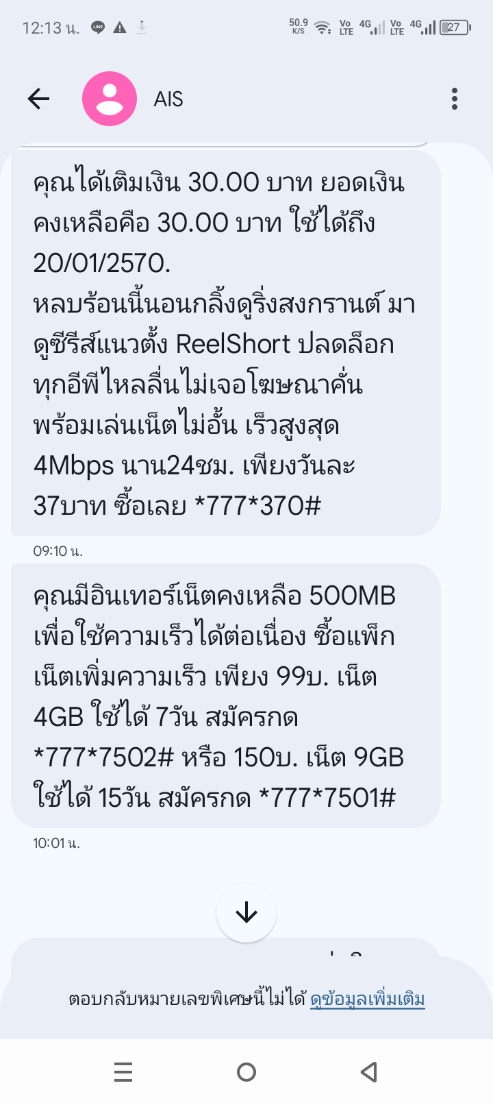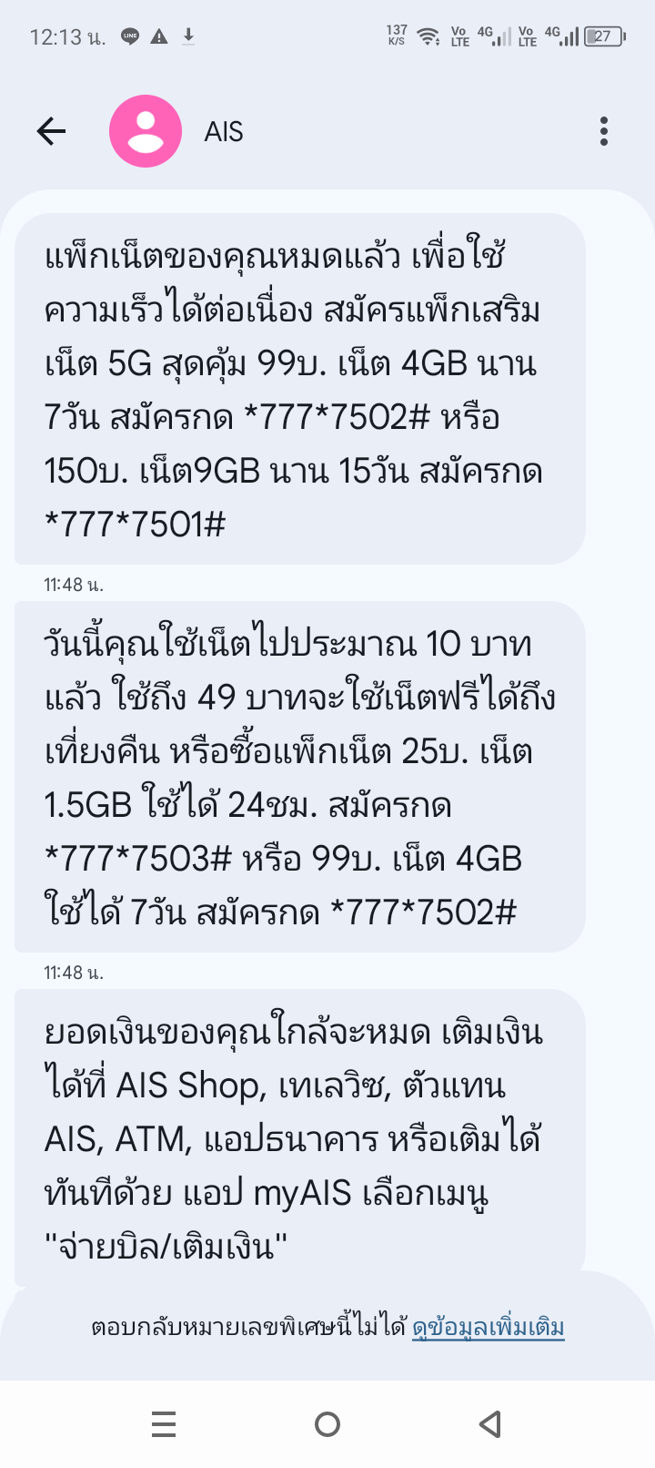 คือเติมเงินใส่จะให้เน็ตรายเดือนหักแต่โดนข้อความคิดค่าบริการไป 120 บาท เน็ต 200 บาท แล้วคือเติมเงินไว้แล้วตื่นมานึกว่าจะได้เน็ตแต่โดนข้อความหักไปคืองงมากยังไม่ได