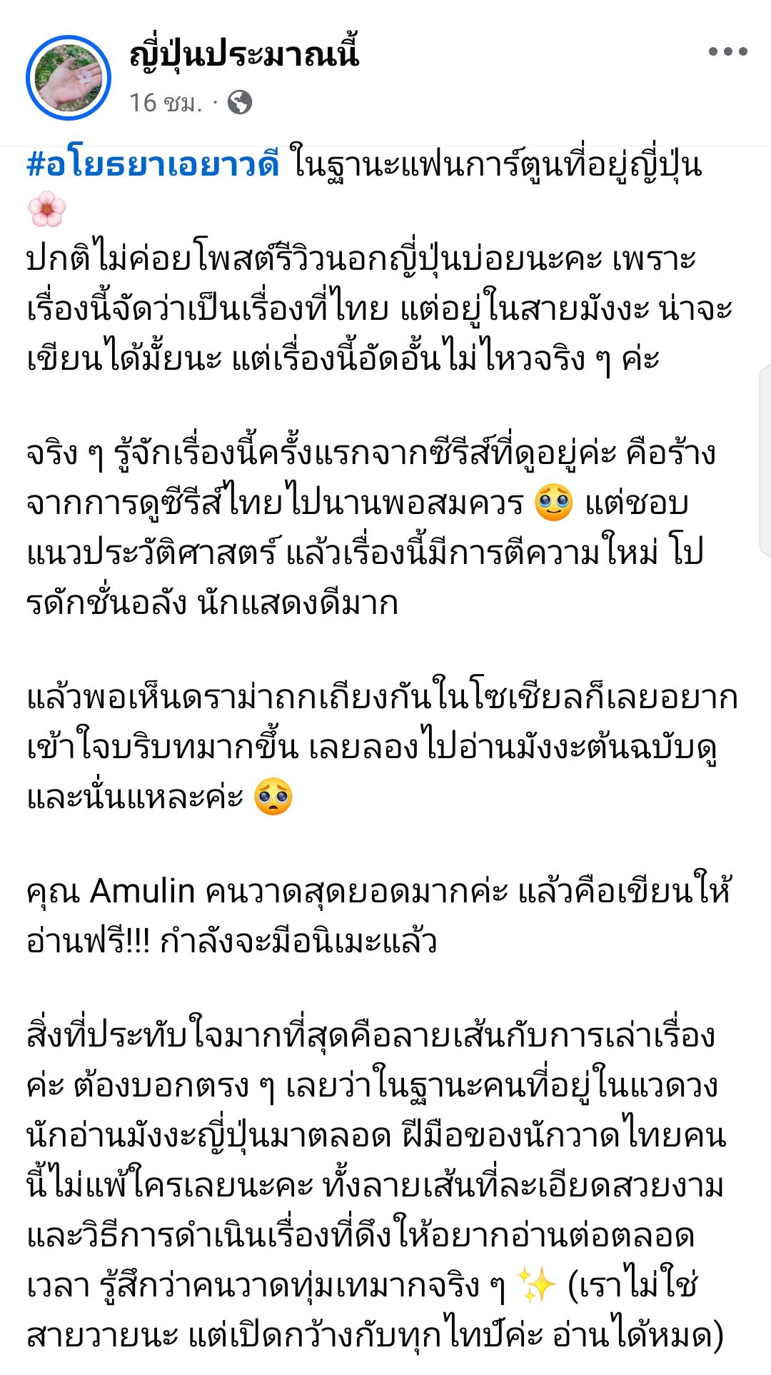 🙏 1 กำลังใจ 🤍 #อโยธยาเอยาวดี ในฐานะแฟนการ์ตูนที่อยู่ญี่ปุ่น 🌸 by ญี่ปุ่นประมาณนี้
