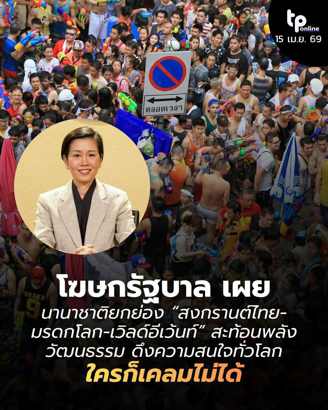 นางสาวรัชดา ธนาดิเรก โฆษกประจำสำนักนายกรัฐมนตรี เปิดเผยว่า บรรยากาศการเฉลิมฉลองเทศกาลสงกรานต์ปีนี้จัดได้ยิ่งใหญ่มาก สะท้อนพลังของ “สงกรานต์ไทย” ในฐานะ มรดกโลกทางวัฒนธรรม ที่ได้รับการยกย่องจาก UNESCO ที่ทุกชาติตระหนักรู้ สามารถเชื่อมโยงผู้คนจากทั่วโลกให้เข้ามามีส่วนร่วม ทั้งในมิติของวัฒนธรรม ประเพณี และความสนุกสนาน