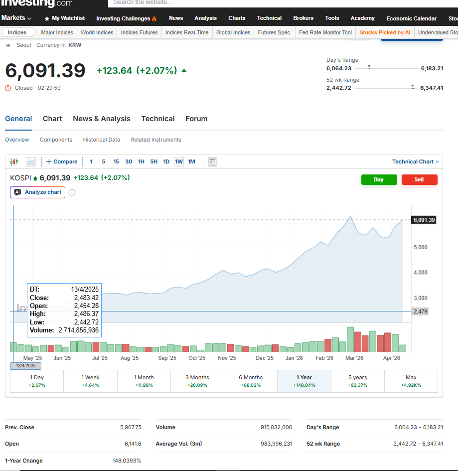ของพี่เกานี่ Korea KOSPI 52W + 148 % นี่ อิหยังวะมากๆ มองไปใน อุตสาหกรรมไหน ก็ดูมีคู่แข่งเข้มแข็งขึ้นไปหมด แต่ตั้งแต่ เปลี่ยน ปธน. มิย.68 นี่ แบบ อะไรนี่ ดัชนีหุ้นขึ้นเอาๆ เงินวอน ก็ อ่อนแล้วอ่อนอีก