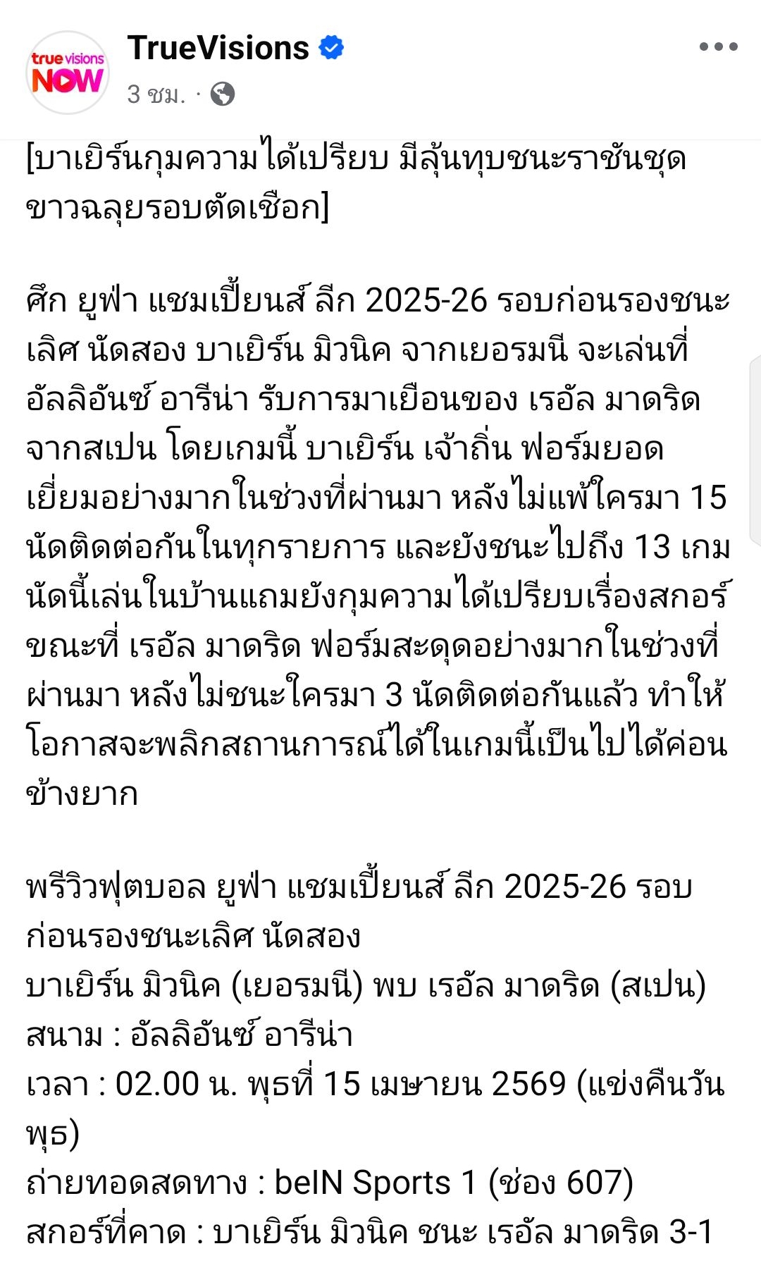 💥 บิ๊กแมตช์ #UCL นัดที่สอง ⚽🏆 : เสือใต้ เปิดรังรับ ราชันชุดขาว