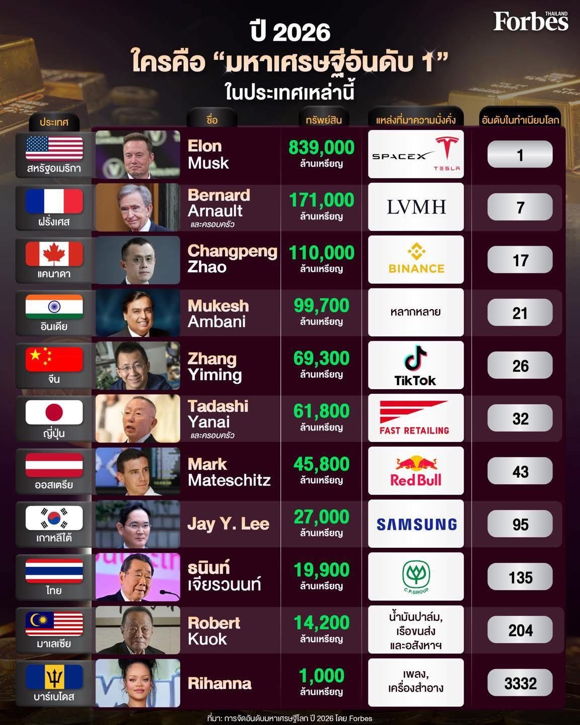 อ่านเพิ่มเติม https://forbesthailand.com/world/global-world/the-richest-billionaires-in-each-country-2026