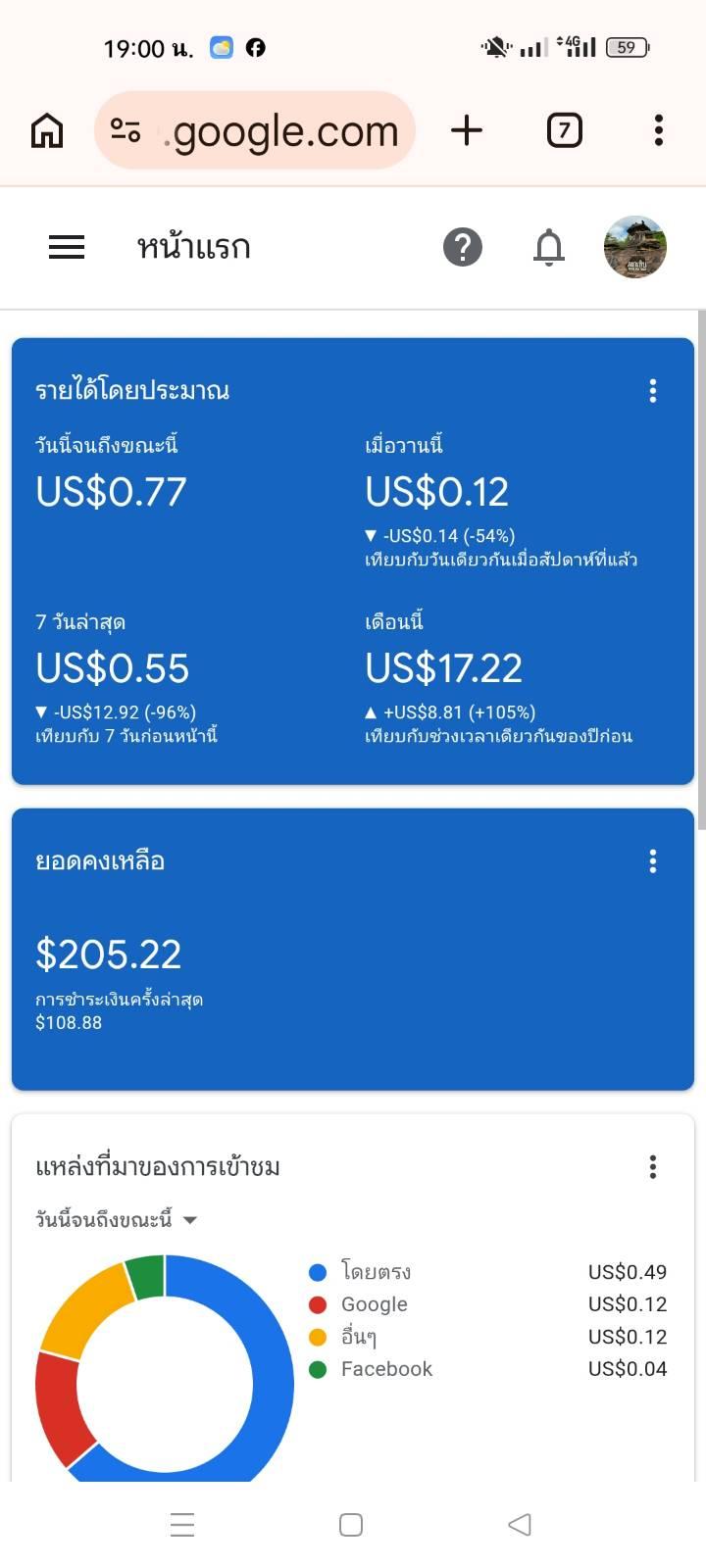 📈เกิดอะไรขึ้น!! วันนี้ AdSense วิ่งดีผิดปกติ จากวันละ 0.07 พุ่งมา 0.77 ทุกคนเป็นอย่างไรกันบ้างคะ ??