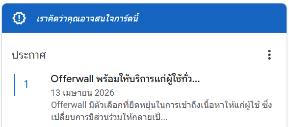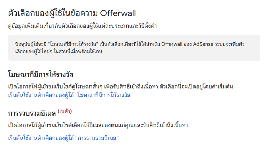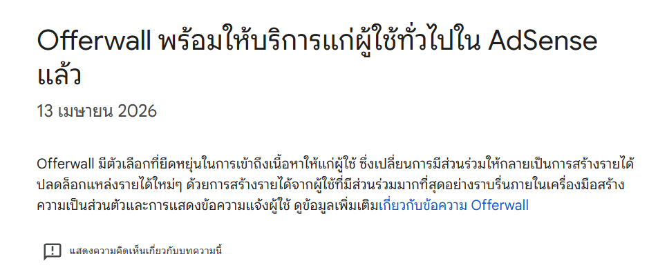 "Offerwall พร้อมให้บริการแก่ผู้ใช้ทั่วไปใน AdSense แล้ว