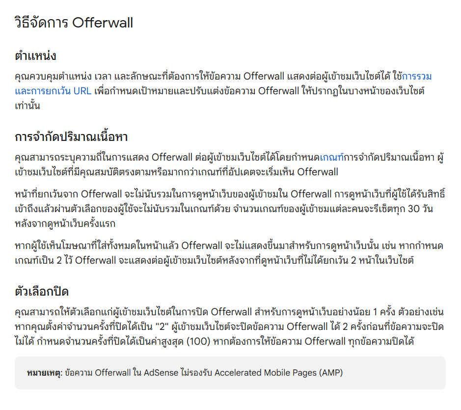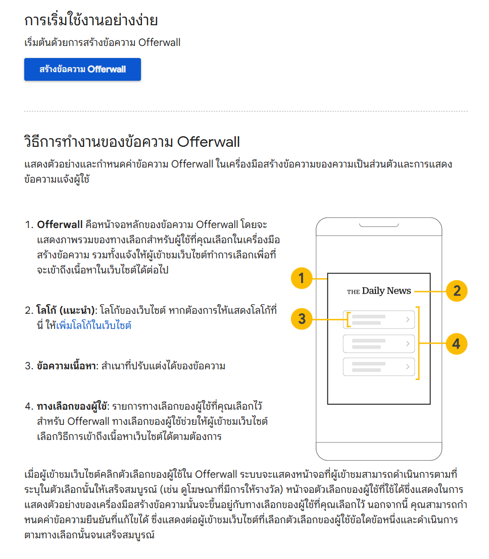 และการแสดงข้อความแจ้งผู้ใช้ ดูข้อมูลเพิ่มเติมเกี่ยวกับข้อความ Offerwall"