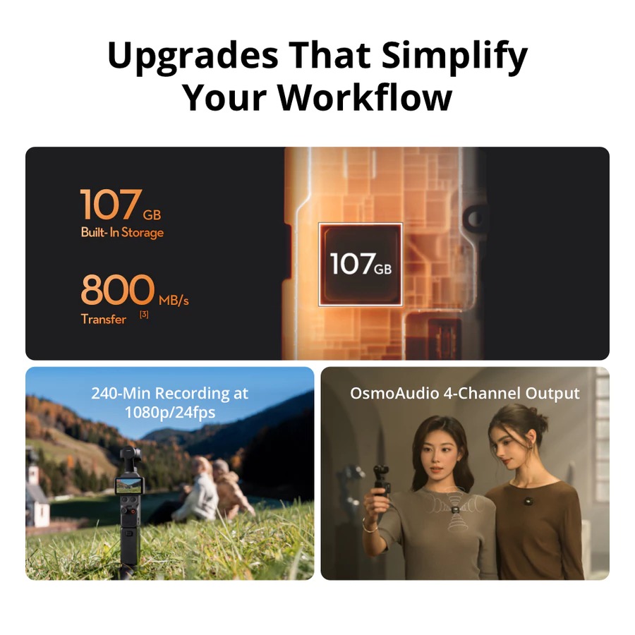 การอัปเกรดอีกหนึ่งจุดสำคัญของ Osmo Pocket 4 ก็คือ ‘หน่วยความจำในตัว’ ขนาด 107GB
