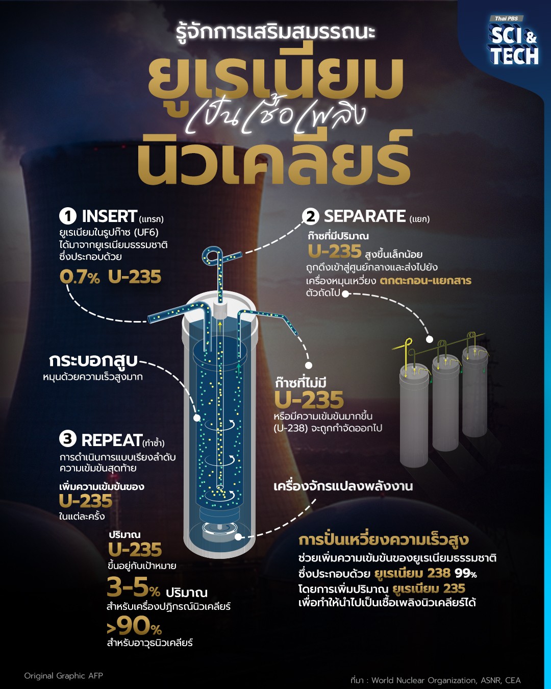 การเสริมสมรรถนะ “ยูเรเนียม” คือหนึ่งในเหตุผลที่สหรัฐอเมริกาและอิสราเอลใช้โจมตีอิหร่าน ด้วยเหตุนี้ Thai PBS Sci & Tech จึงขอพาไปทำความเข้าใจกระบวนการ Ultracentrifugation ที่ใช้ในการเสริมสมรรถนะยูเรเนียมเพื่อใช้เป็นเชื้อเพลิง “นิวเคลียร์” ว่ามีกระบวนการอย่างไรบ้าง