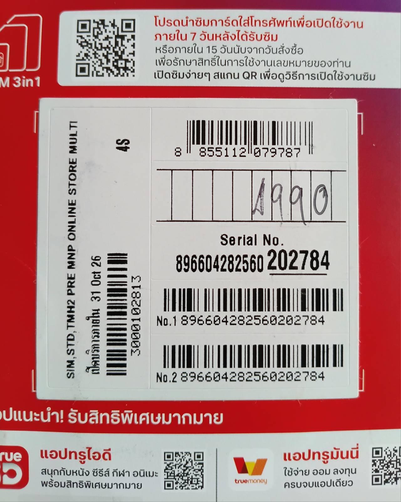● เลขหลังซิม 3 หลักสุดท้าย ไม่ตรงกับแผงซิมและหลังซองนะครับ