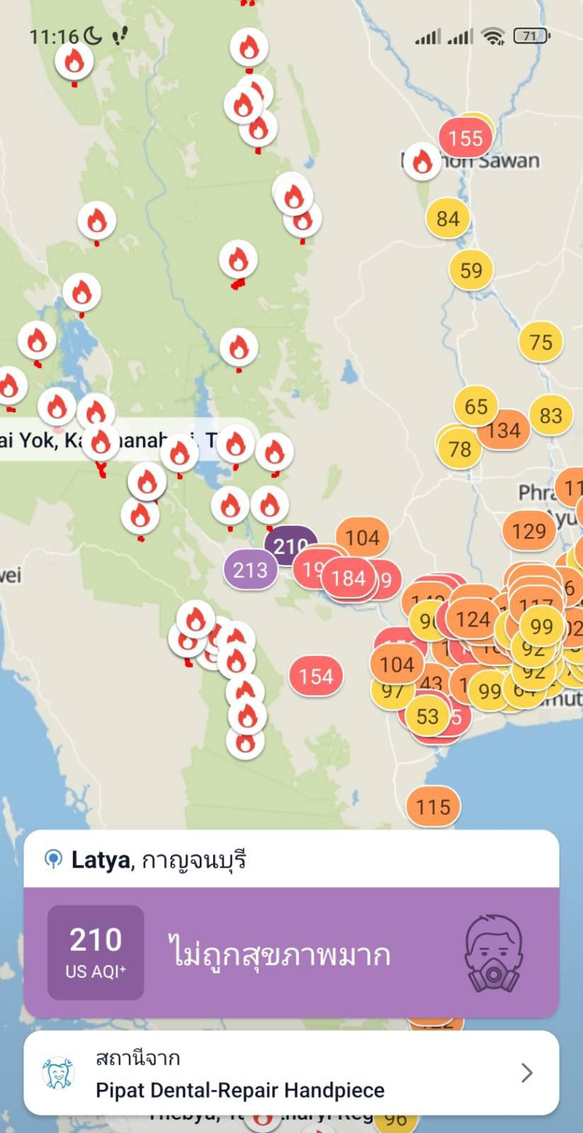 จนวันนี้แถบกาญจนบุรีเริ่มควันคลุ้ง ค่าฝุ่นพุ่งสูงเกิน 200+