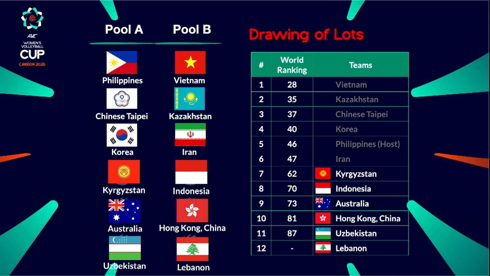 AVC Women's Cup แบ่งสายเรียบร้อย ทีมหญิงเอเชียที่ไม่ได้แข่งVNLปีนี้