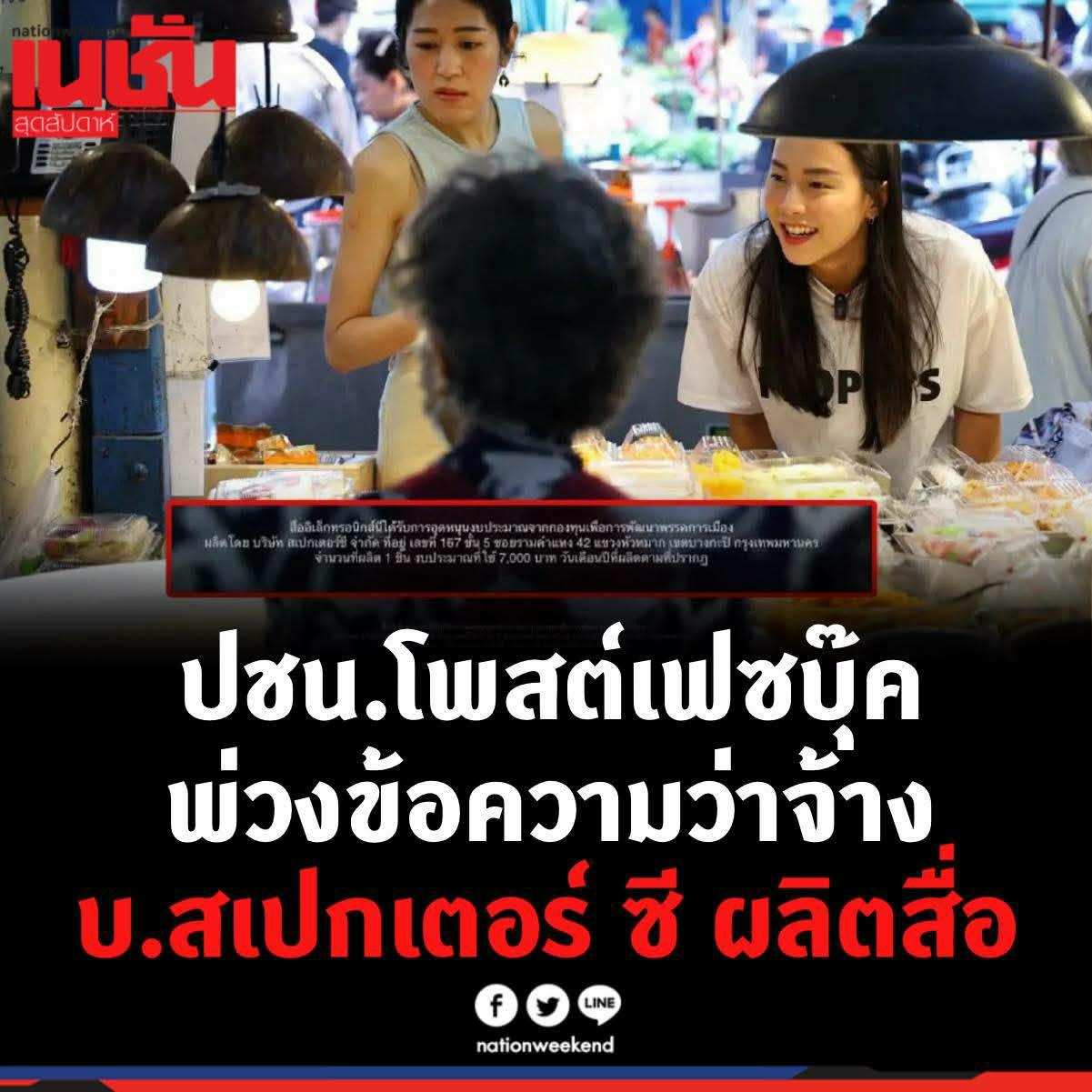 พบ “พรรคประชาชน” โพสต์เฟซบุ๊ค พ่วงข้อความว่าจ้าง บริษัท สเปกเตอร์ ซี ผลิตสื่อเผยแพร่ คิดราคา 5,000 บาท และ 7,000 บาท