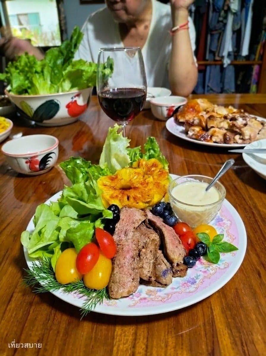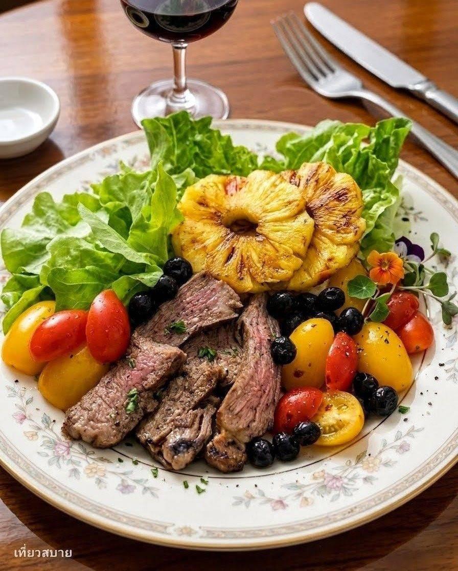 “สลัดเนื้อดรายเอจ Grain Fed จับคู่สับปะรดย่าง” บอกเลยว่า