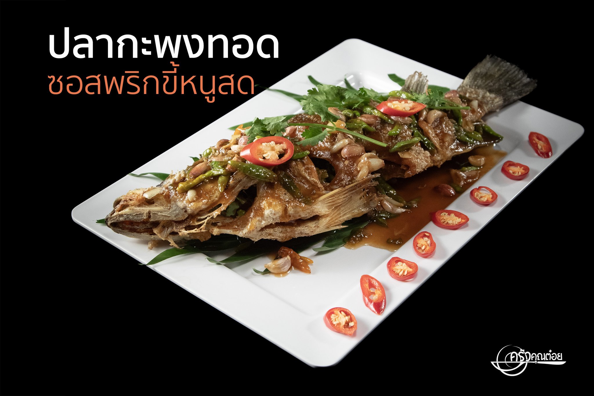 ปลากะพงทอดซอสพริกขี้หนูสด ร้านเสน่ห์ไทย