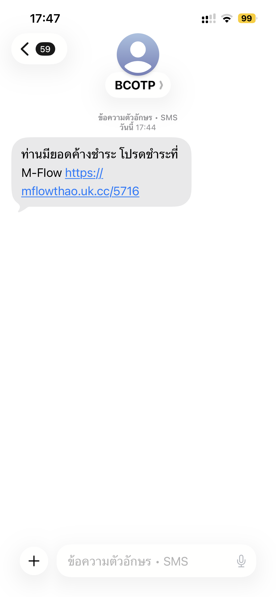 ได้รับข้อความจาก BCOTP บอกค้างชำระ??? มิจจีไหมคะ