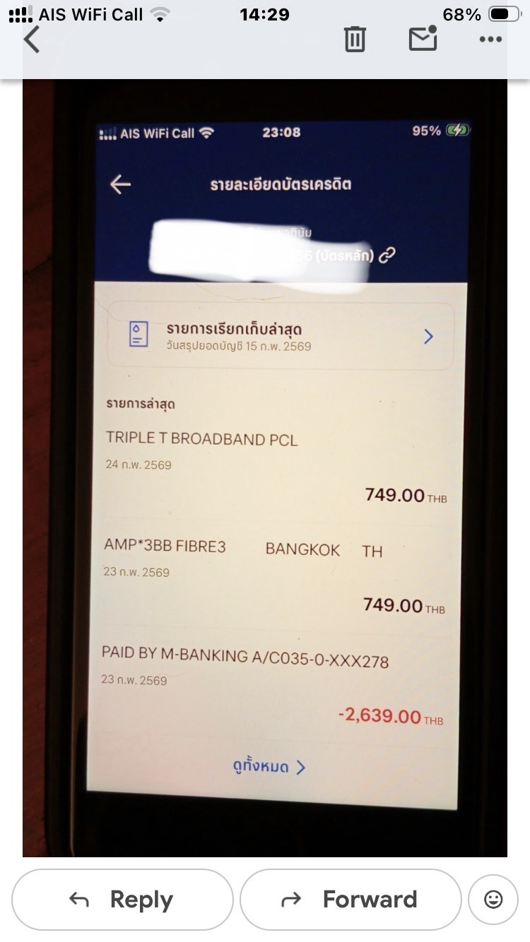 -เลยอยากเตือนภัยทุกๆท่าน ที่อยากทำธุรกรรมใดๆกับ 3 bb x AIS Fiber เวลาเอาเงินเราไปง่ายมาก ตัดเพียงอึดใจ