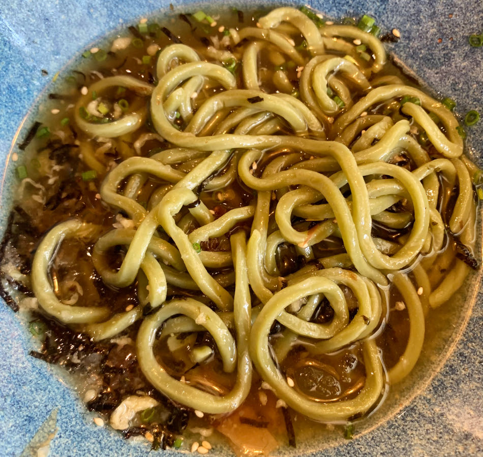 เส้นอย่างแข็ง เคี้ยวละเอียดยาก น้ำซุปเย็นยูซุ