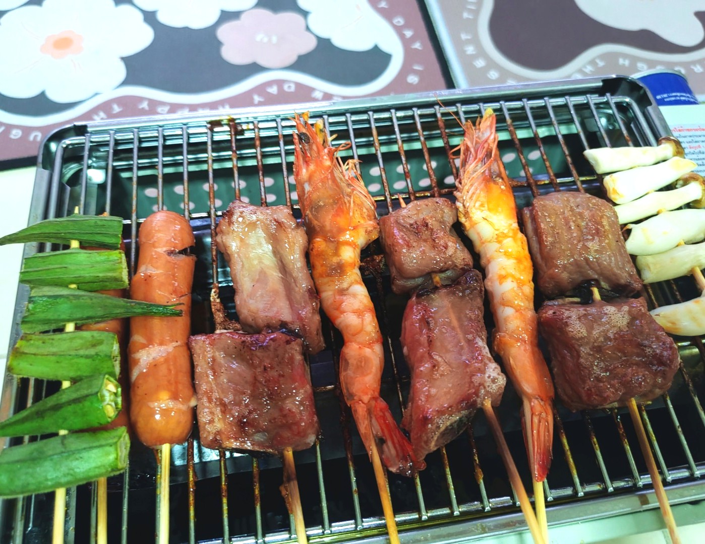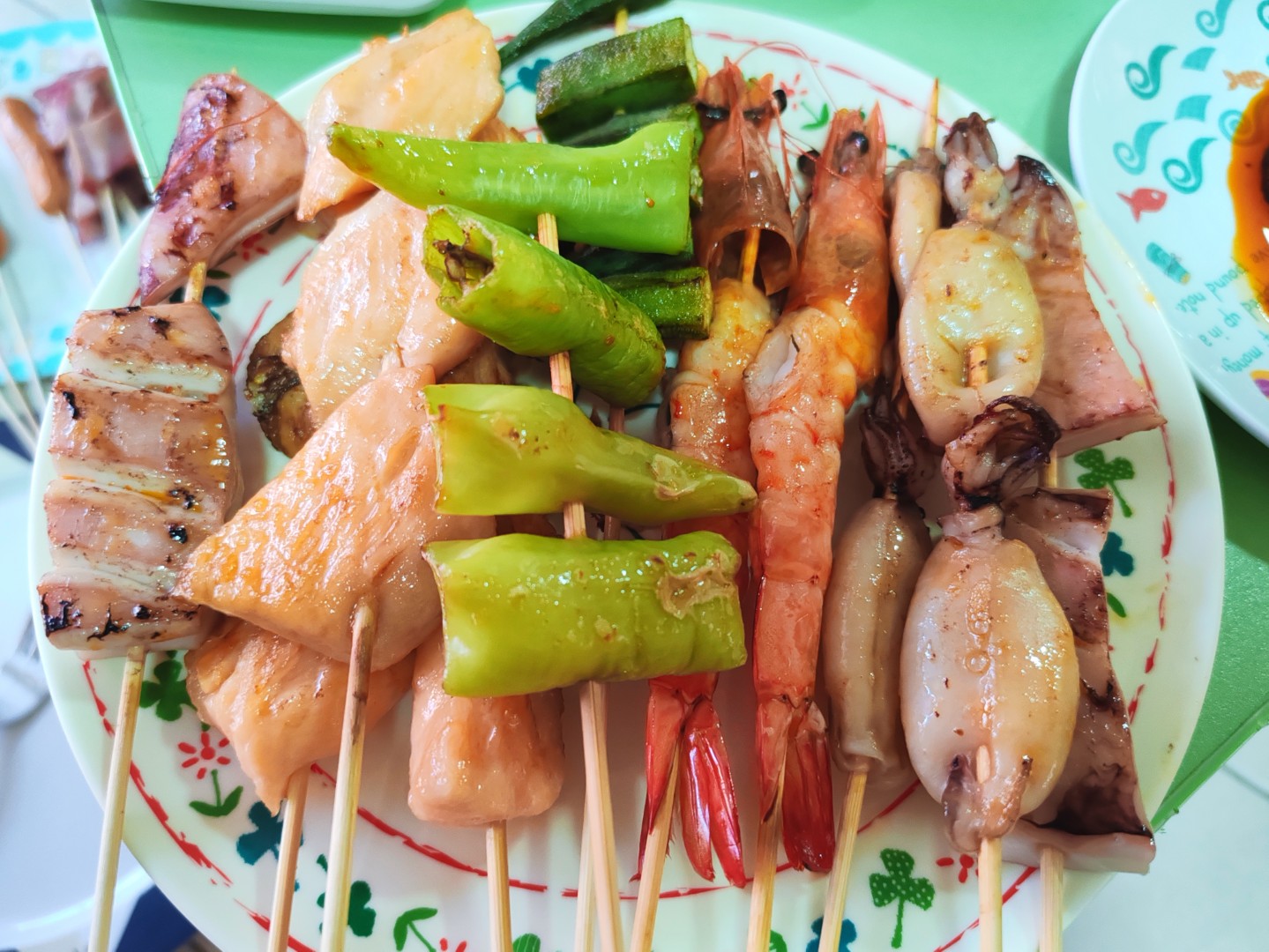 คุณผู้หญิงอยากกิน ปิ้งย่าง หม่าล่า เสียบไม้ เชฟกระทะหลบ จัดให้ครับ🦑🦐 🐋 🌶️🍄🟫🥒 🐷