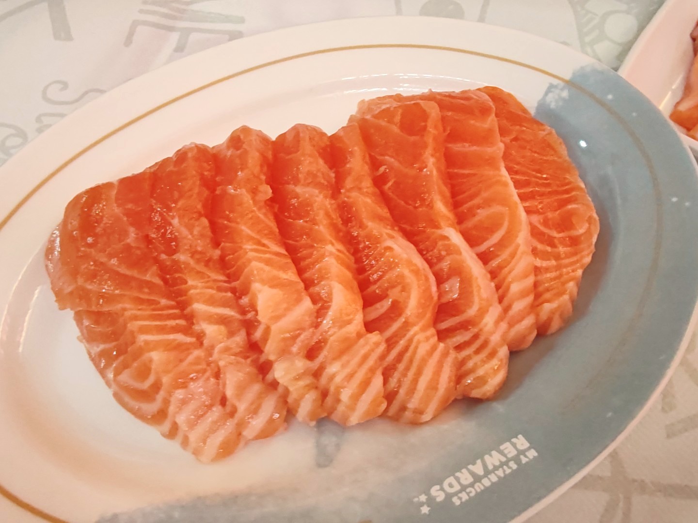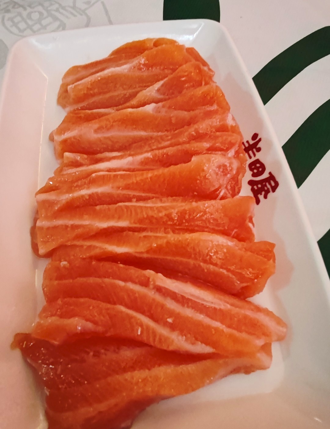 ได้ไม้เสียบมาแล้ว ก็เปิดดูตู้เย็น จัดไป ท้องปลาแซลม่วน นี่ได้มาจาก lopia super แถวบ้านฮะ
