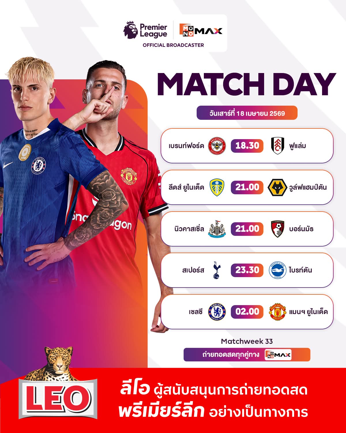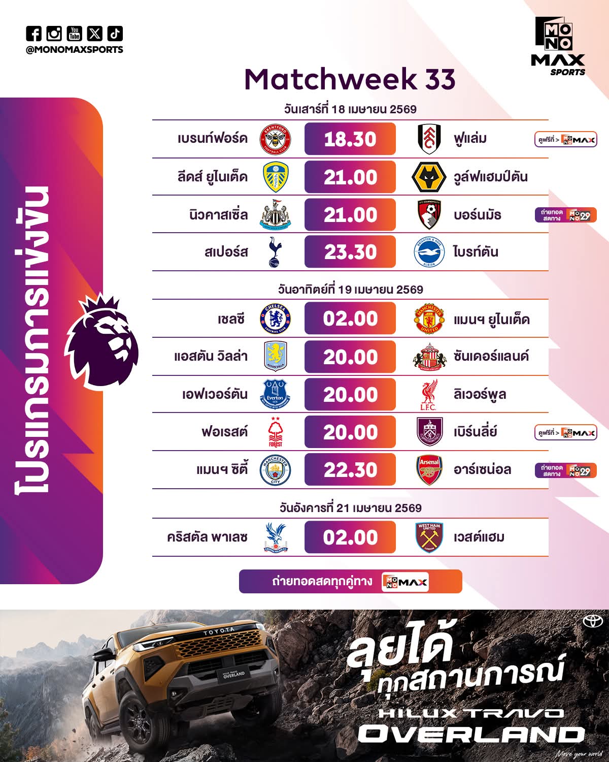 ⚽🏴 #พรีเมียร์ลีก I 🗓️ แมตช์วีคที่ 33 📺 #Mono29 #Monomax 🔴