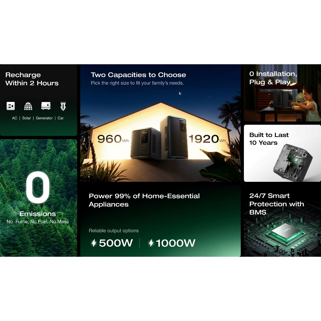 🔌 ถ้ากำลังมองหาพาวเวอร์สเตชันที่ใช้งานได้ทั้งในบ้านและนอกสถานที่ EcoFlow DELTA 3 เครื่องสำรองไฟ เป็นรุ่นที่น่าสนใจเพราะให้ความจุ 1920Wh จ่ายไฟได้ 1000W และ X-Boost 1500W รองรับอุปกรณ์จำเป็นอย่างคอม เราเตอร์ พัดลม หรือเครื่องใช้ไฟฟ้าขนาดเล็กได้ค่อนข้างยืดหยุ่น จุดที่ใช้งานจริงแล้วสะดวกคือมี UPS <10 ms และเป็นแบบ Plug and Play ไม่ต้องติดตั้งซับซ้อน ชาร์จได้ทั้งไฟบ้าน โซลาร์เซลล์ และรถยนต์ จึงตอบโจทย์ทั้งวันไฟดับ งานที่ต้องการไฟต่อเนื่อง และการพกออกทริป