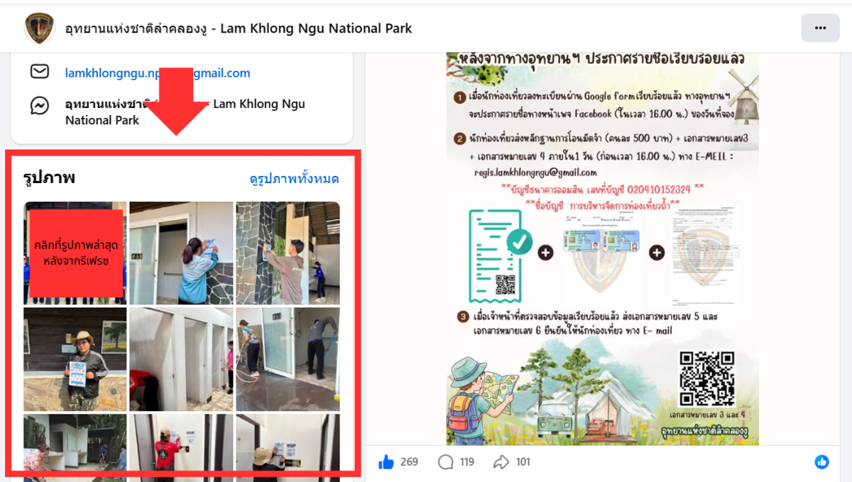 4) แอดมินจะโพสต์ลิงค์พร้อมกับภาพถ่ายแจ้งรอบและเวลา เฟสบุ๊คมันจะดีเลย์นิดนึงที่หน้าแรก มันจะยังไม่ขึ้นที่หน้าฟีด เราต้องฉวยโอกาสนี้ เข้าไปที่คลิกที่รูปภาพของเพจ เราจะเห็นลิงค์ก่อน (ใช้ทริคนี้ได้กับทั้งคอมฯ และมือถือ)