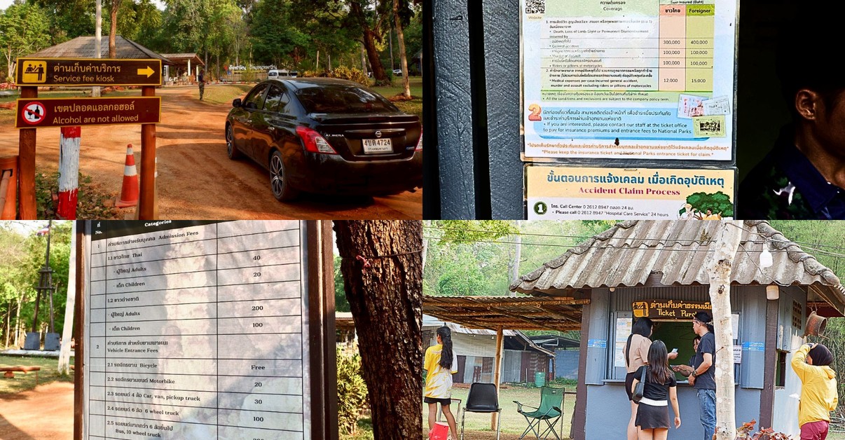 เราแวะสั่งข้าวกล่องร้านอาหารตามสั่งหน้าหน่วยฯ ไว้สำหรับเป็นมื้อเย็นแล้วจึงไปต่อยังหน่วยฯ เพื่อกางเต็นท์ จุดนี้เราต้องชำระค่าธรรมเนียมอุทยานฯ ค่าประกันอุบัติเหตุ และสามารถติดต่อเช่าอุปกรณ์ได้ เช่น เต็นท์ ถุงนอน แผ่นรองนอน เป็นต้น และสามารถนำปลั๊กมาต่อพ่วงไฟได้ ค่าบริการ 100.- บาท
