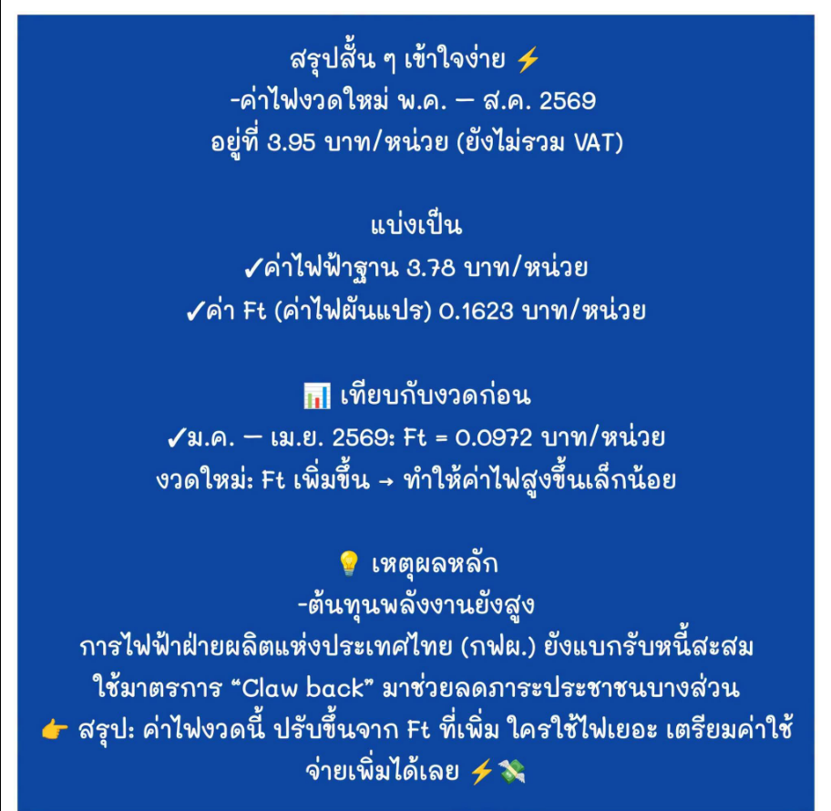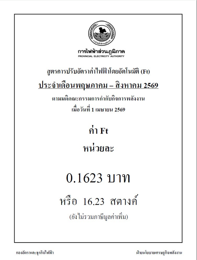 ค่าไฟฟ้ามันไม่ได้มีแต่ค่า ft มันคือค่าไฟฟ้าฐาน + ft