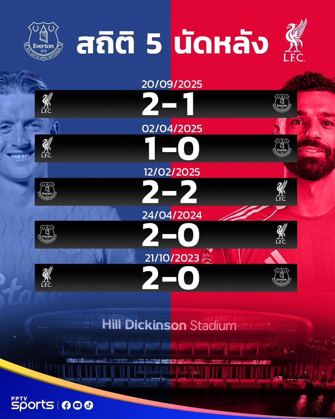ส่วน อิดริสซ่า เกย์ ยิงให้ "ท็อฟฟี่บลูส์" ส่วนสถิติการพบกัน 5 นัดหลังสุด ลิเวอร์พูล ชนะ 3 เสมอ 1 และแพ้ 1 นัด