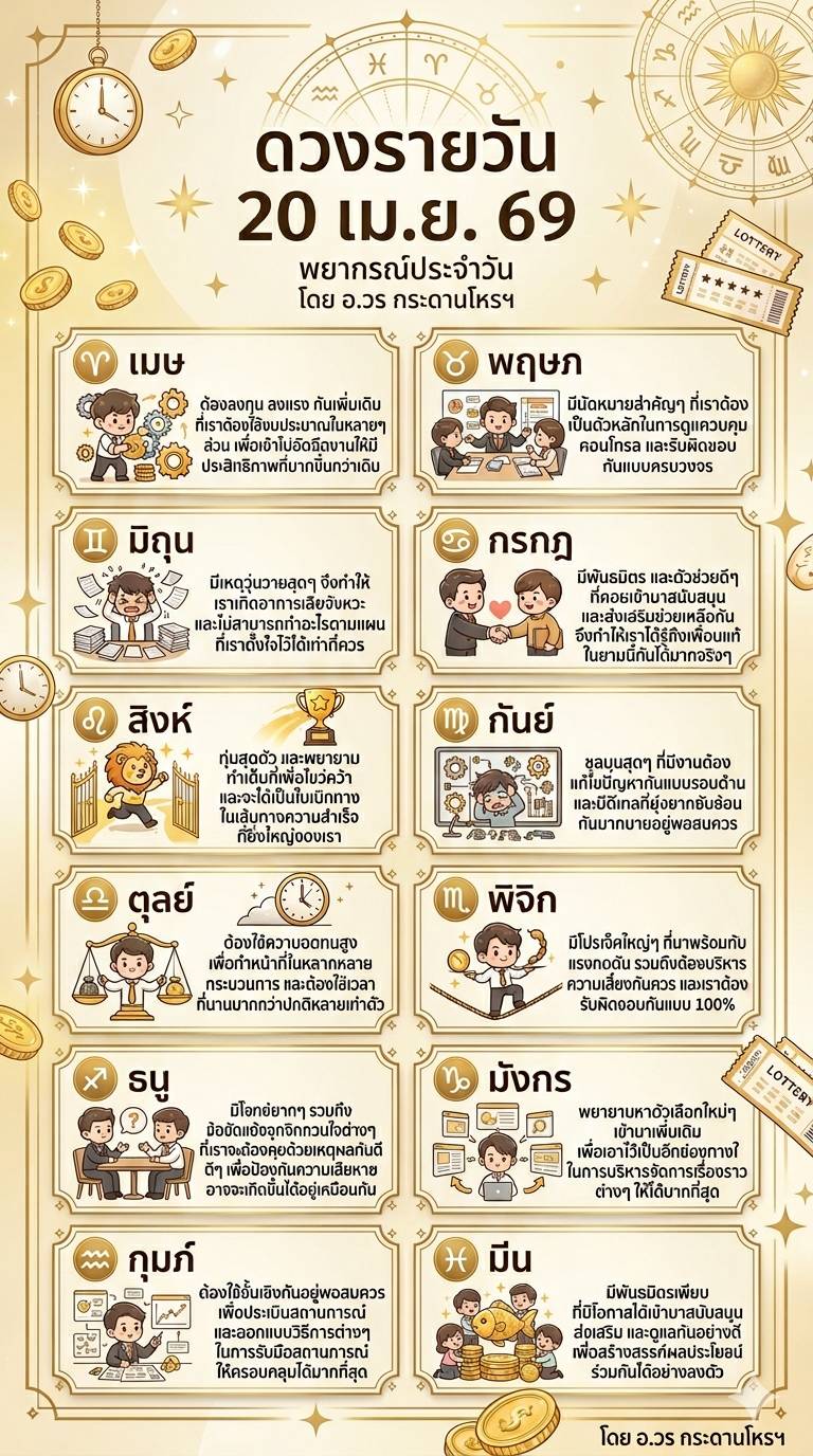 Ψ ☀ ดวงวันนี้ 20 เมษายน พ.ศ. 2569 โดย อ.วร กระดานโหรฯ ☀ 卐