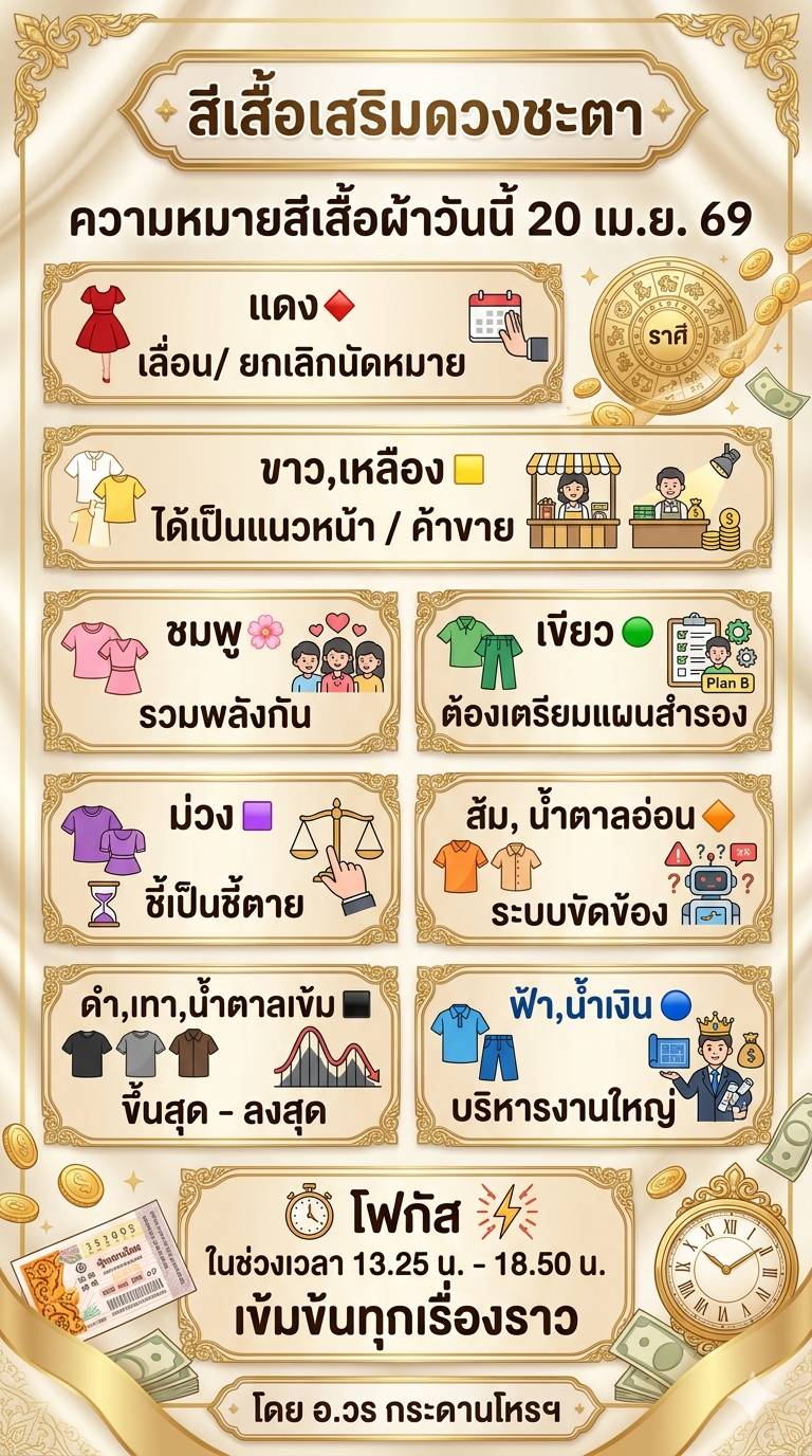 ความหมายสีเสื้อผ้าวันนี้ 20 เม.ย. 69