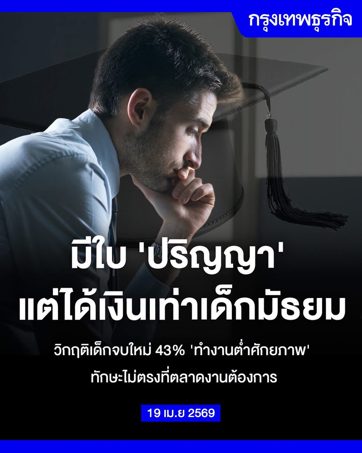 ทำตามสูตรสำเร็จของชีวิต มีใบ ‘ปริญญา’ แต่ได้เงินเท่าเด็กมัธยม วิกฤติเด็กจบใหม่ 43% 'ทำงานต่ำศักยภาพ' AI กระทบงานระดับเริ่มต้น-ทักษะบัณฑิตไม่ตรงที่ตลาดงานต้องการ