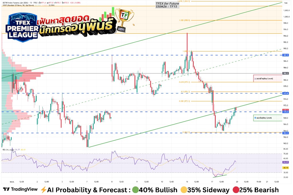 กลยุทธ์: ย่อ Long แนวรับ 966-968 หรือ Follow Long หากเบรก 974 (Fibo 38.2%)