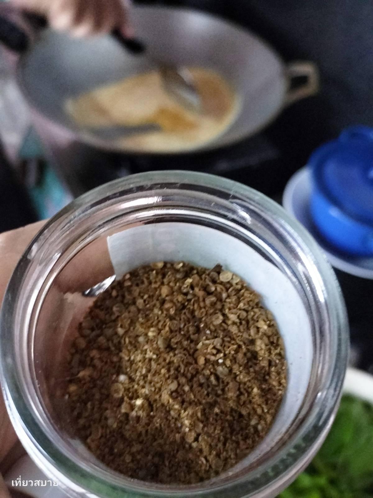 (นำทั้งหมดมาคั่วให้หอมก่อน แล้วตำละเอียด)